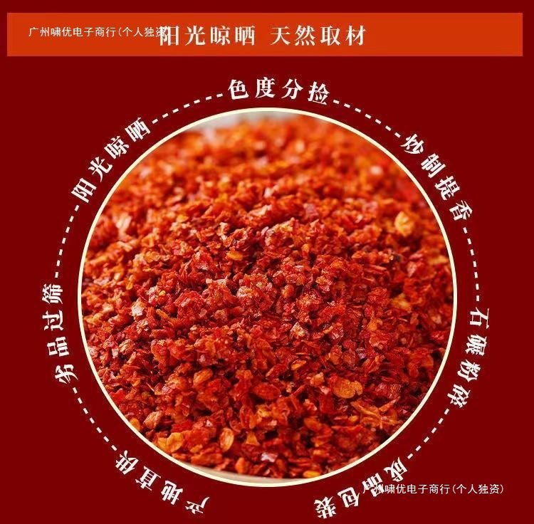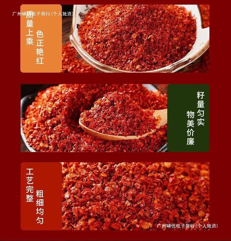 | Packaging specifications | 100g slightly spicy coarse powder,100g slightly spicy fine powder,Medium spicy coarse powder 100g,Medium spicy fine powder 100g,Extra spicy coarse powder 100g,Extra spicy fine powder 100g,Mild spicy coarse powder 250g,Mild spicy powder 250g,Medium spicy coarse powder 250g,Medium spicy fine powder 250g,Extra spicy coarse powder 250g,Extra spicy fine powder 250g,Extra spicy medium thick powder 250g,Medium spicy medium coarse powder 250g,250g slightly spicy medium coarse powder,Mild spicy coarse powder 500g,500g slightly spicy medium coarse powder,Mild spicy powder 500g,Medium spicy medium coarse powder 500g,Medium spicy coarse powder 500g,Medium spicy fine powder 500g,Extra spicy coarse powder 500g,Extra spicy medium thick powder 500g,Extra spicy fine powder 500g |