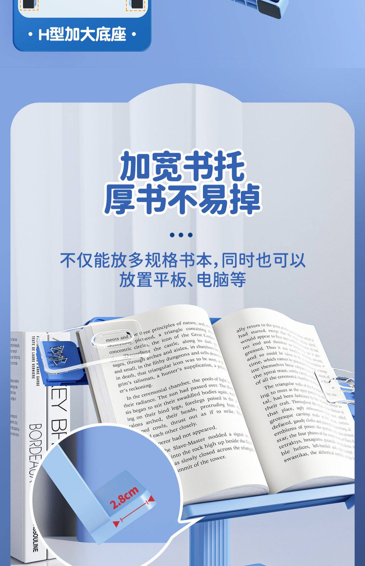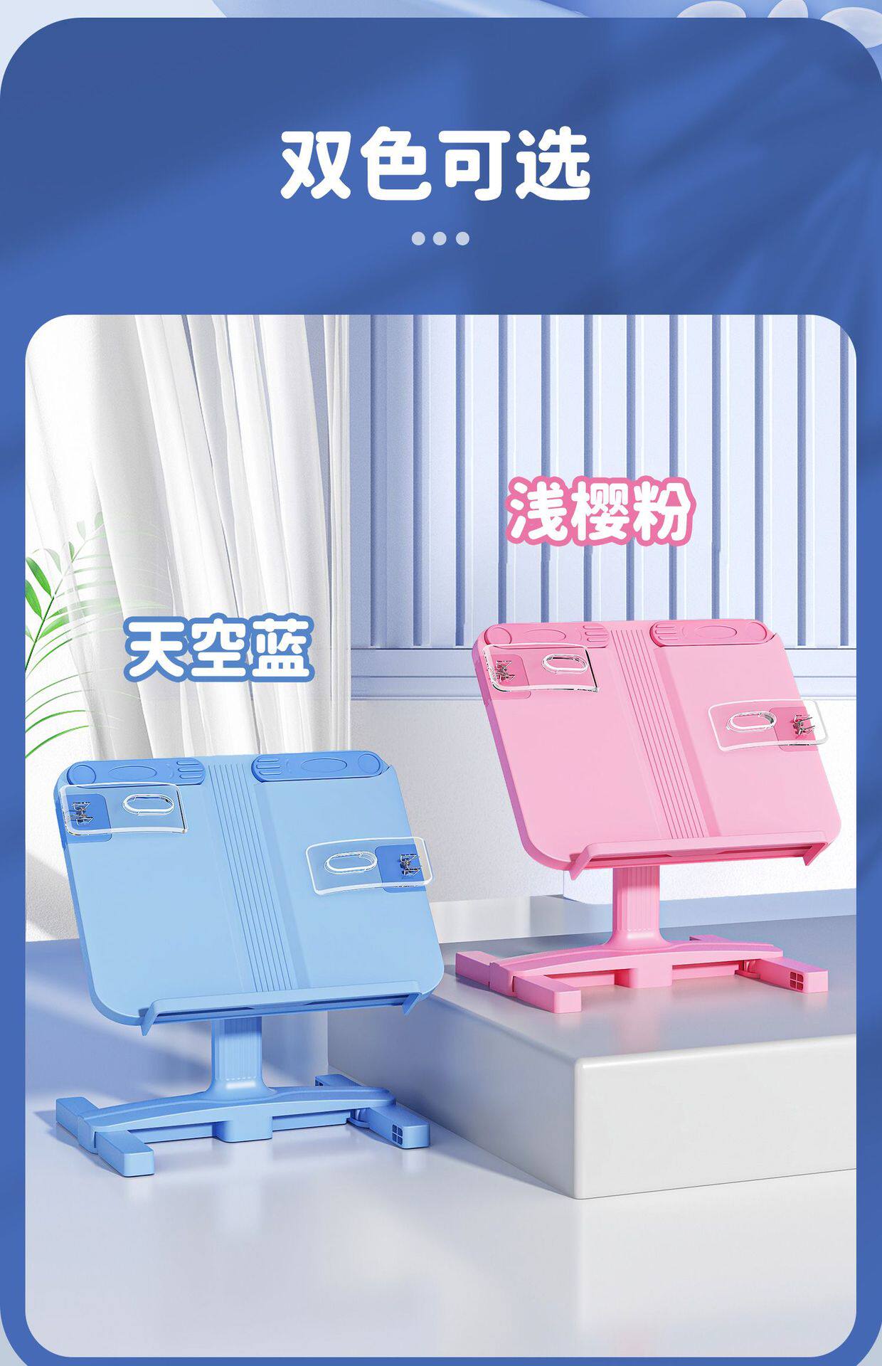 | Color | [basic reading stand] sky blue/free exquisite stickers,[new upgrade] the sky blue h-shaped base is as stable as a mountain/comes with a finger reading stick + exquisite stickers*2,[new upgrade] light cherry pink h-shaped base is as stable as mount tai/comes with finger reading stick + exquisite stickers*2,[upgraded posture 2-piece set] sky blue/h-shaped base + sitting posture corrector / free finger reading stick + exquisite stickers*2,[upgraded posture 2-piece set] light cherry pink/h-shaped base + sitting posture corrector / free finger reading stick + exquisite stickers*2,[upgraded reading set] sky blue/h-shaped base reading stand + sitting posture corrector set / free finger reading stick + exquisite stickers*2 + finger reading stick,[upgraded reading set] light cherry pink/h-shaped base reading stand + sitting posture corrector set / free finger reading stick + exquisite stickers*2 + finger reading stick,[upgraded posture correction eye protection set] sky blue/corrector pad style + reading stand,[upgraded posture correction eye protection set] light cherry pink/corrector pad style + reading stand,[reading set-sky blue] sitting posture corrector clip-on table style + reading stand/free stickers,[basic reading stand] light cherry pink/free exquisite stickers |