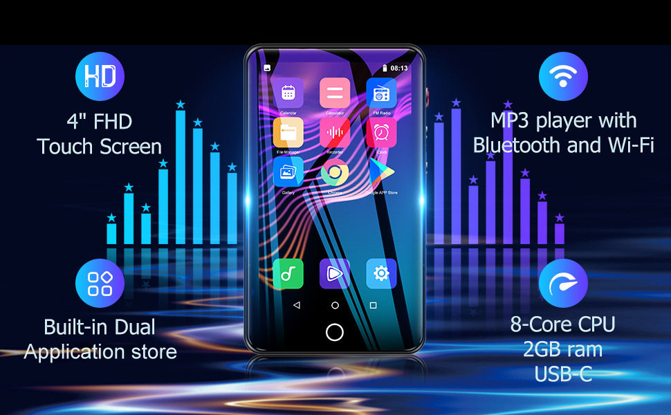 Mp3 Music Player Mobile Phone Portable Player Student Mp4 Player for High School Students Wifi Internet Access English Listening
