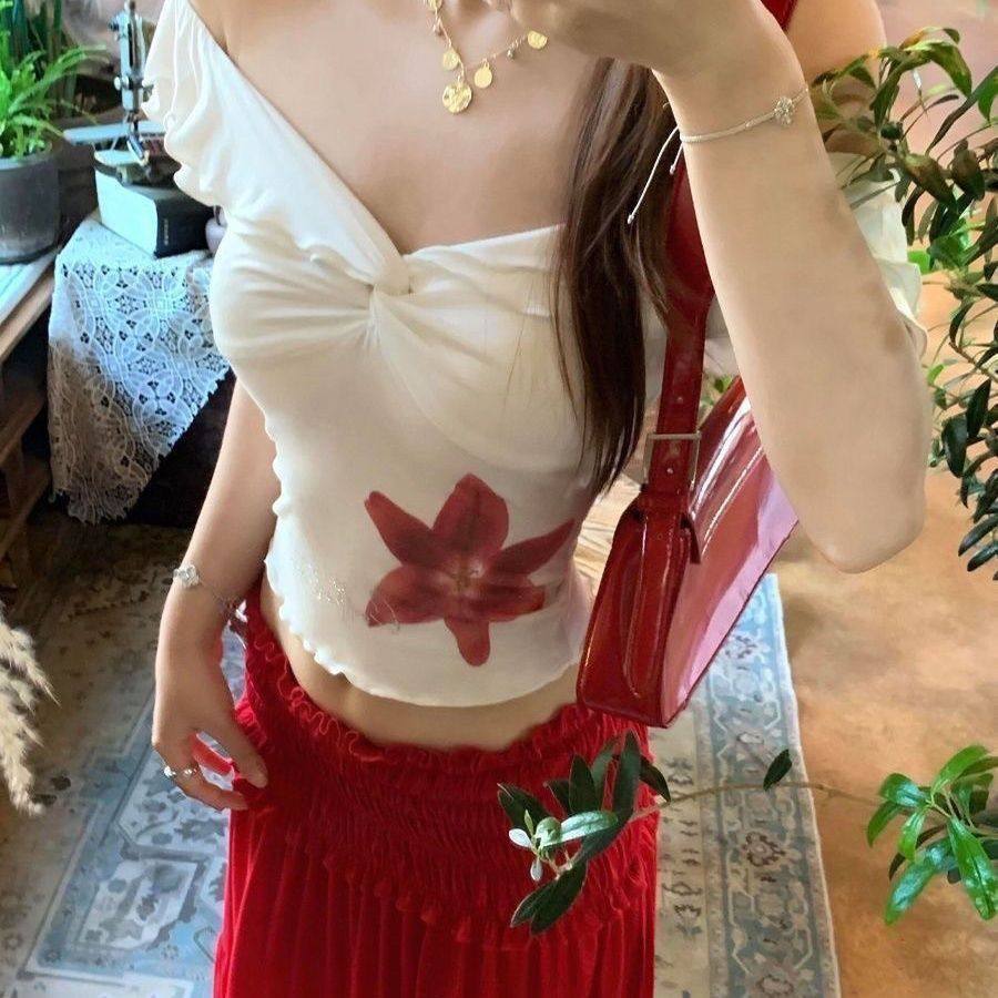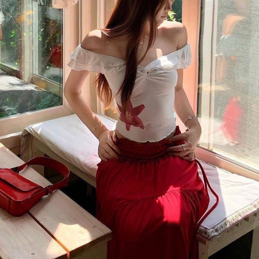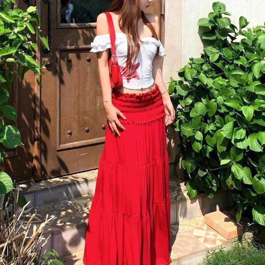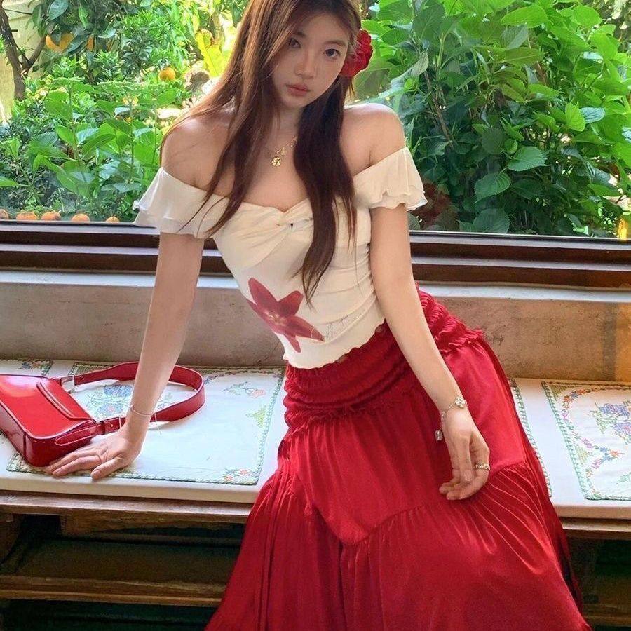 Summer Women's Suit 2025 New Style Top, One-Piece Slim-Fitting Red High-Waisted Skirt Two-Piece Set