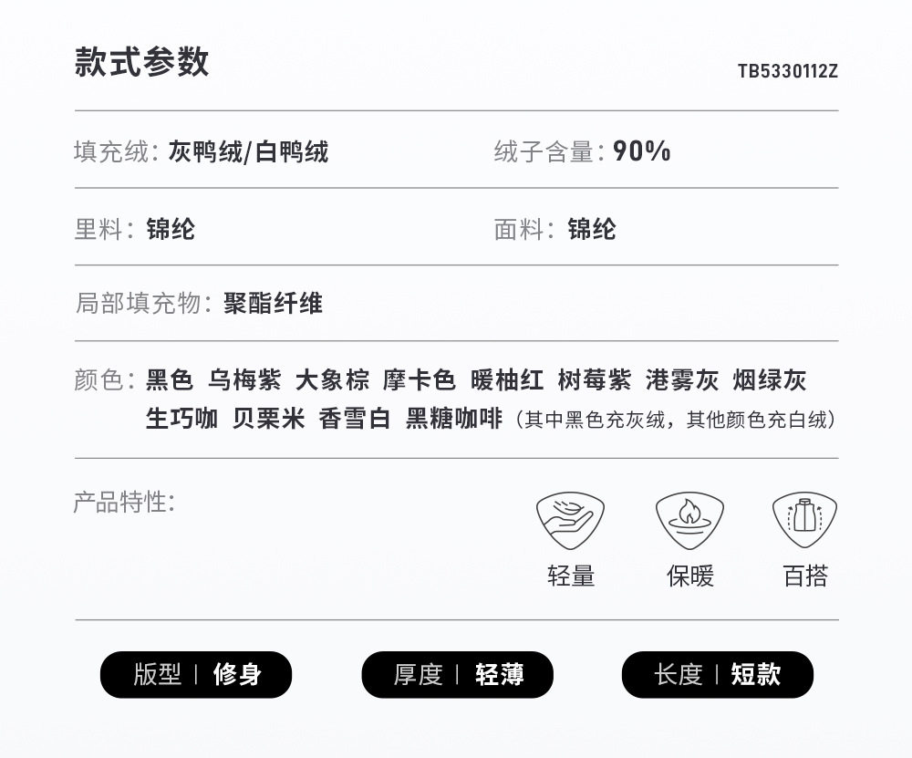 Tambor down Jacket Lightweight Women's Short V Neck Spring Autumn Winter Inner Liner Jacket Tb5330112Z