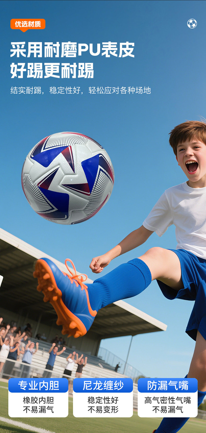 No. 5 Football Cross-Border Pu Leather Football Campus Sports Competition Training Wholesale Primary and Secondary School Black and White Football