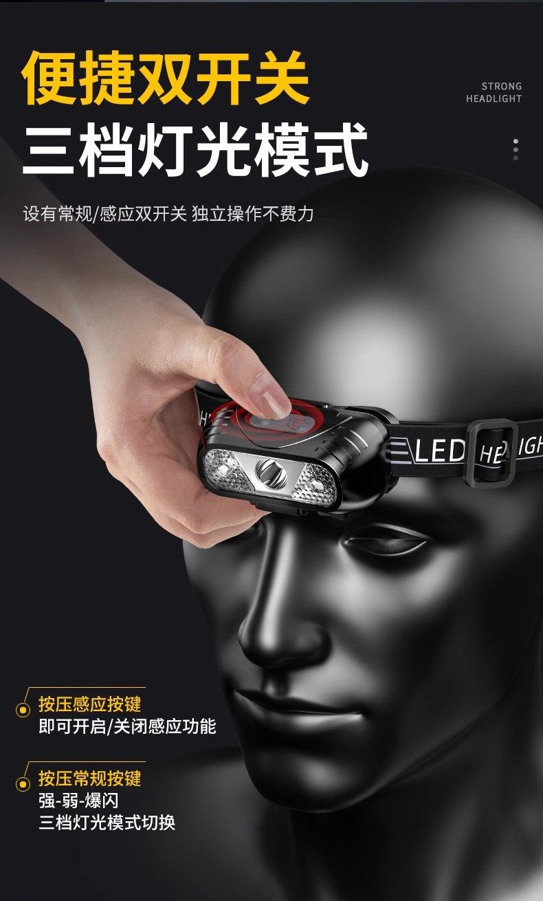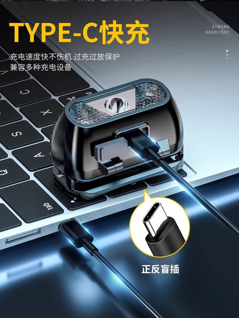 Strong Light Headlamp for Fishing, Special Sensor, Ultra-Long Battery Life, Hat Clip Lamp, Flashlight, Ultra-Bright Rechargeable Head-Mounted Clip-On Night Fishing