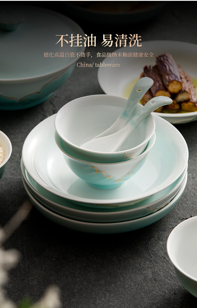 Dehua Celadon Tableware 2025 New Style Exquisite and High-Looking Chinese Style Accessible Luxury High-End Underglaze Color Ceramic Bowl Rice Bowl