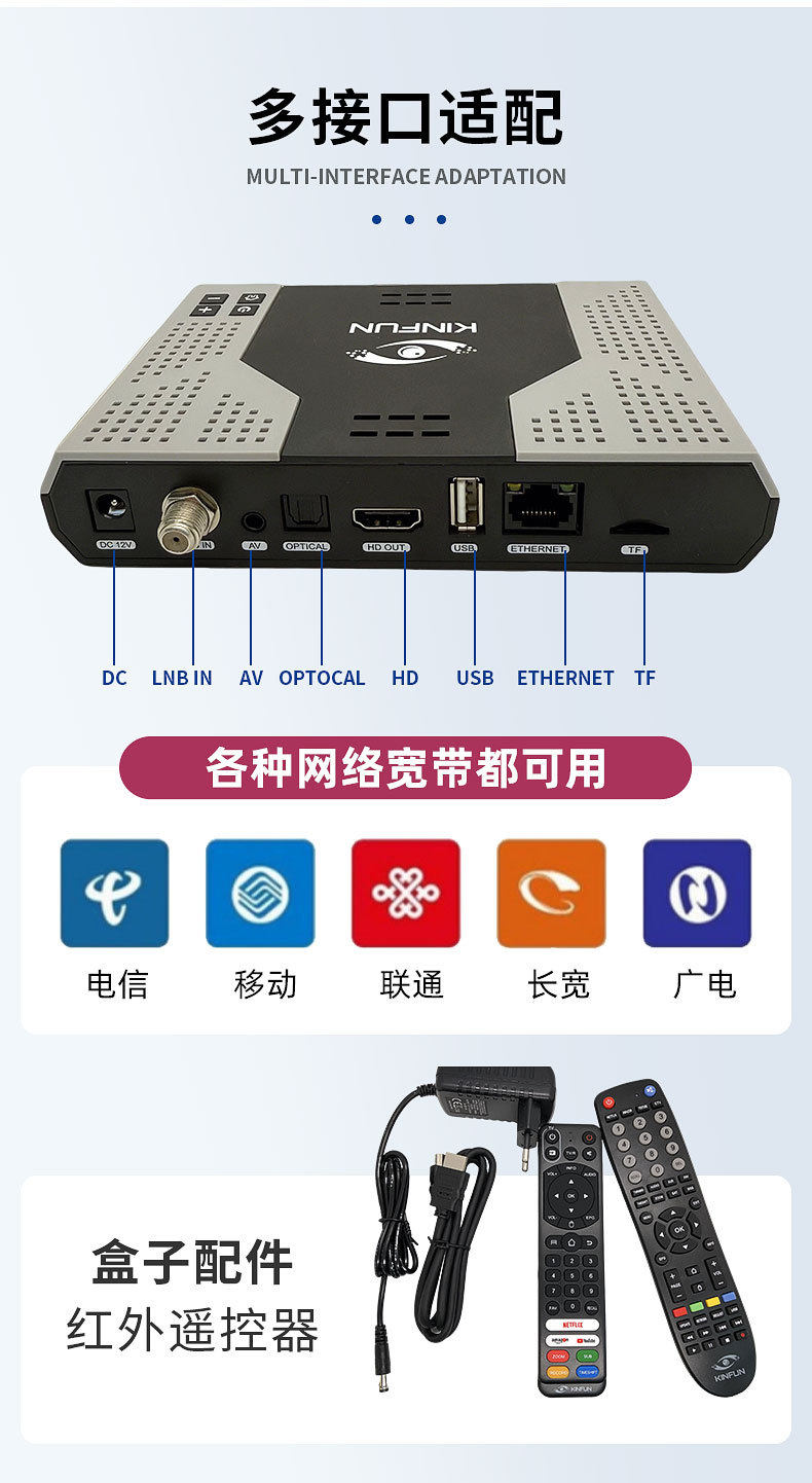 Kinfun Tv Box Network Set-Top Box Android Network Player Bluetooth 4K High-Definition 5g Tv Home Use