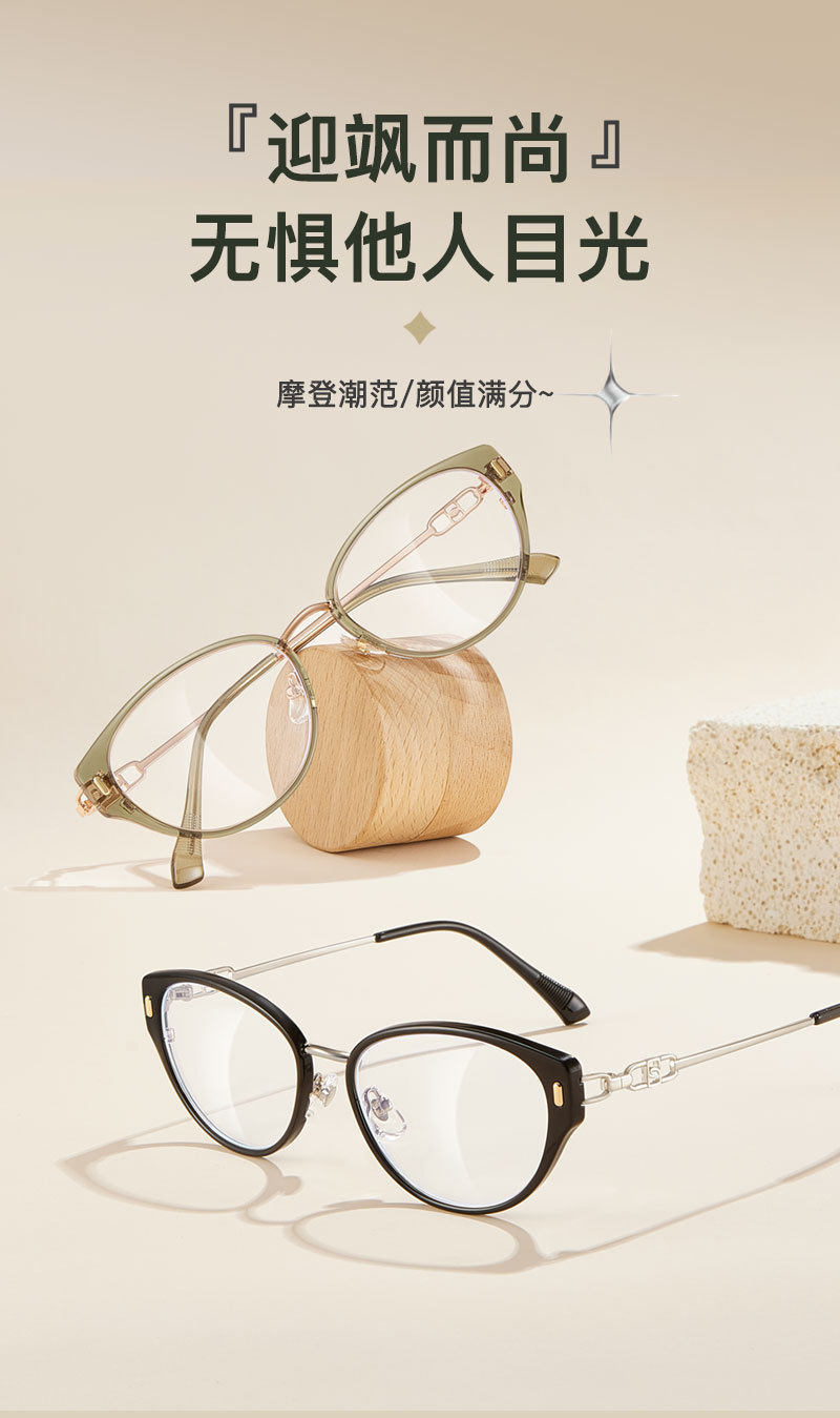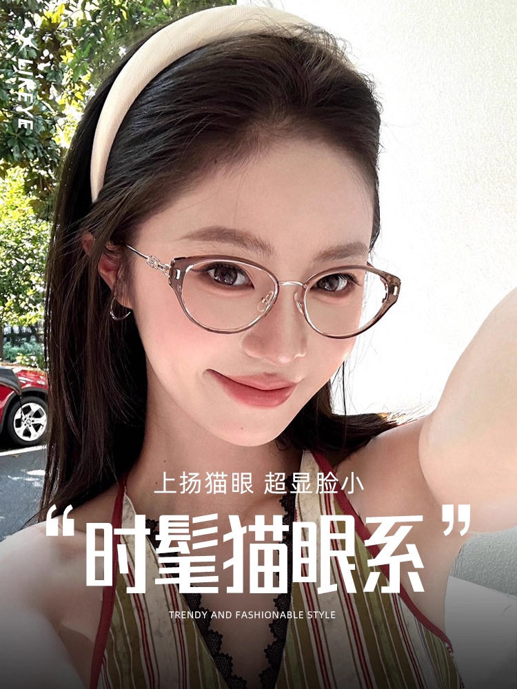 Korean-Style Cross-Border Tr90 Lightweight Cat-Eye Glasses for Women with Myopia, Available with Prescription, Anti-Blue Light, Plain, Natural Look Glasses Frame