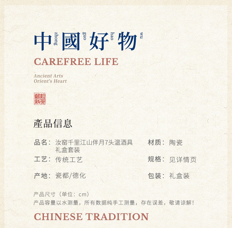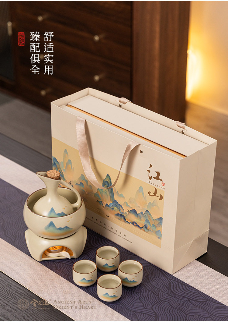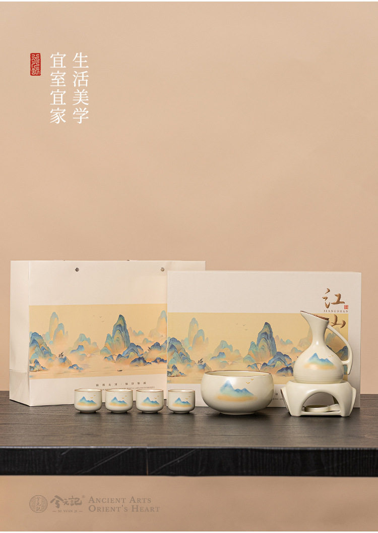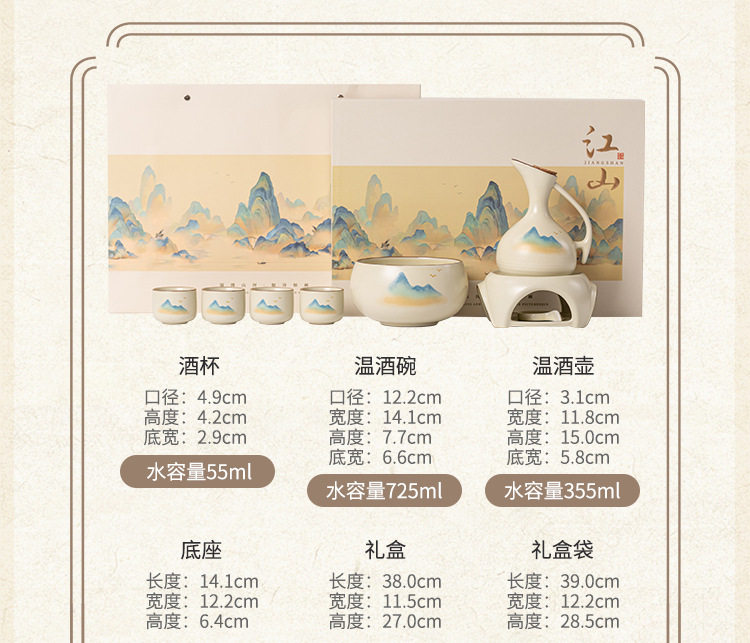 | Color | Qianli jiangshan ban yue 7-head wine warmer gift box set |