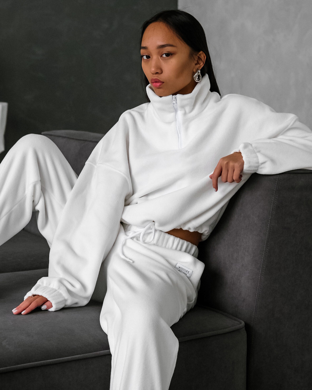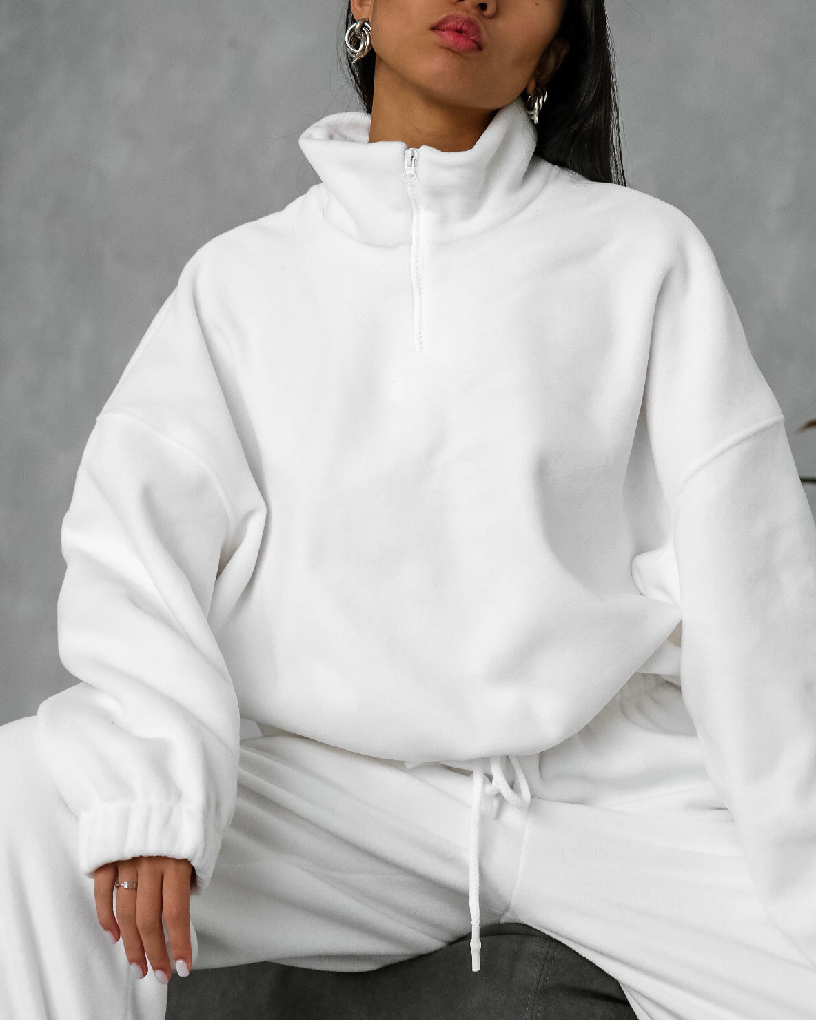 New European and American Style Amazon Fashion Casual Long-Sleeved Loose Zipper Stand-Up Collar Sweatshirt Fashionable Autumn and Winter Women's Suit