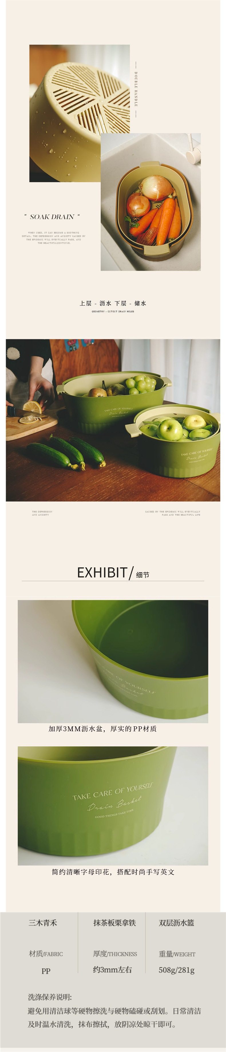Thickened Double-Layer Vegetable Washing Basin Drain Basket Kitchen Vegetable Basket Fruit Basket Bowl Fruit Plate Fruit Basin Home Living Room Coffee Table