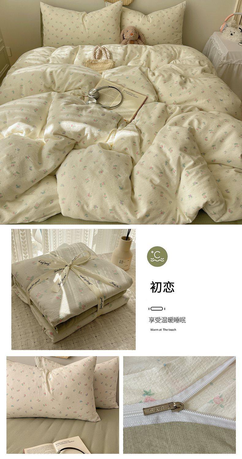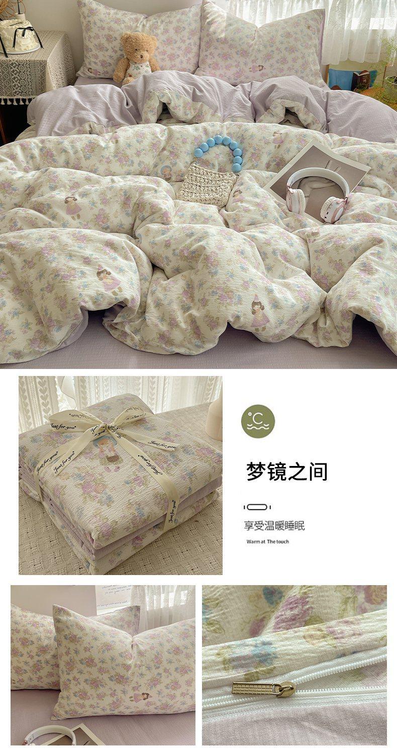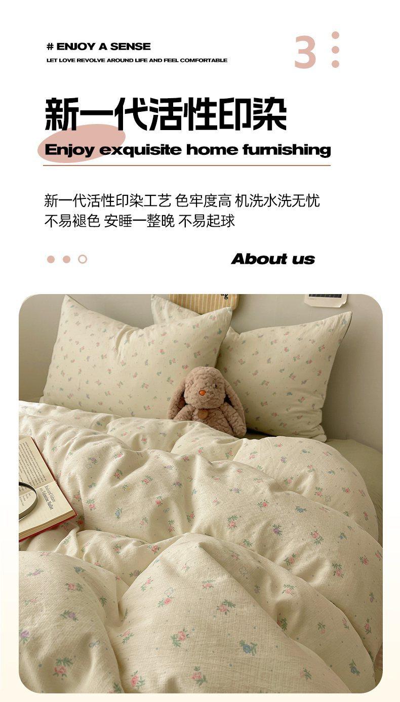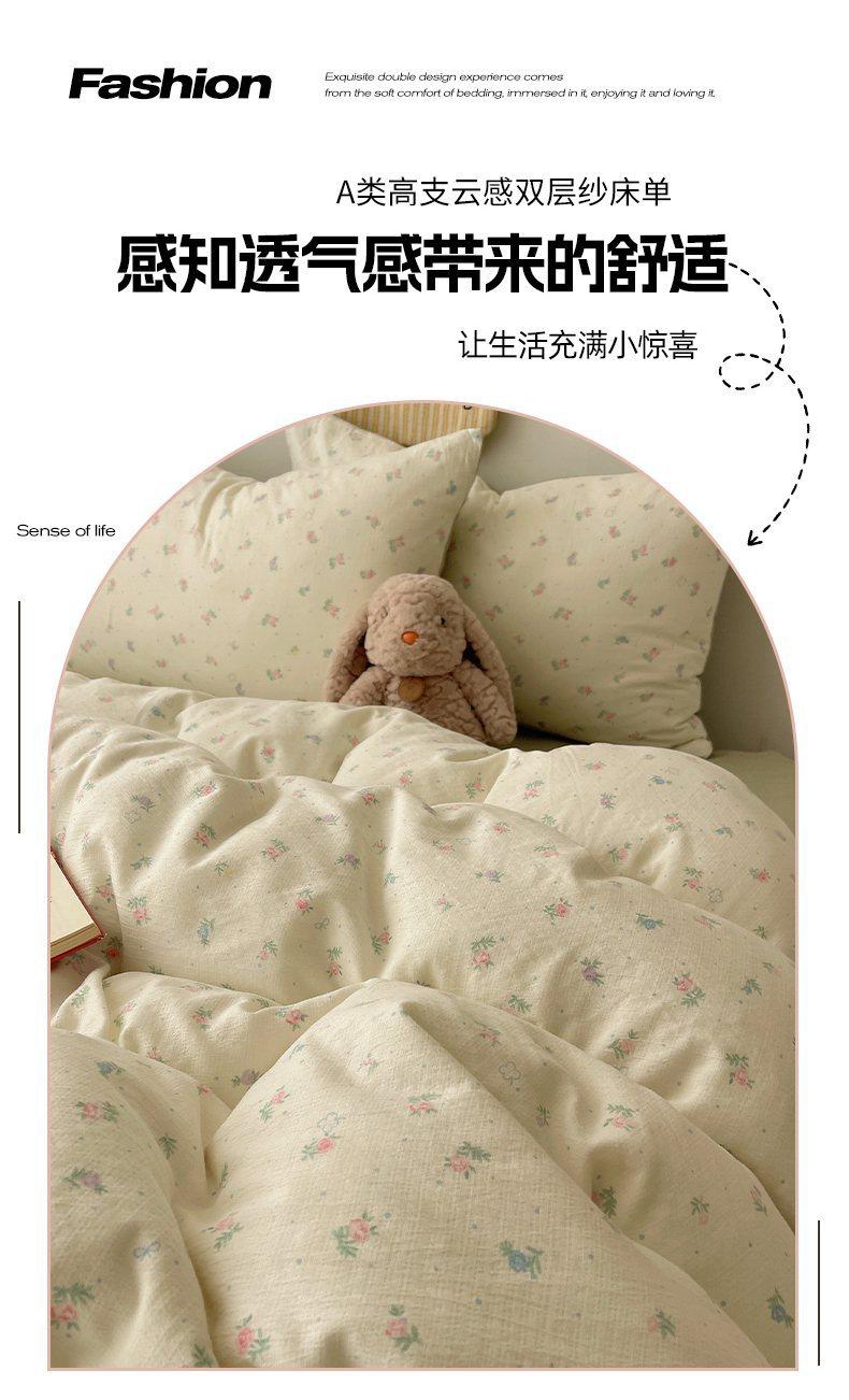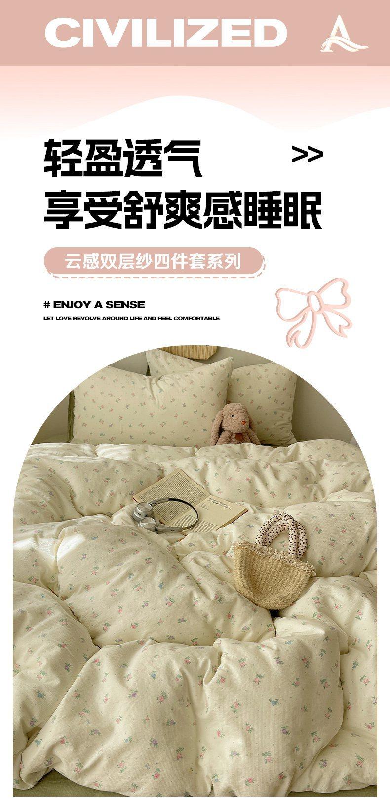 Maternity and Baby Grade a Four-Piece Set of Pure Cotton Double-Layer Yarn Bedding Ins Floral Bed Bed Sheets Quilt Cover Dormitory Three-Piece Set