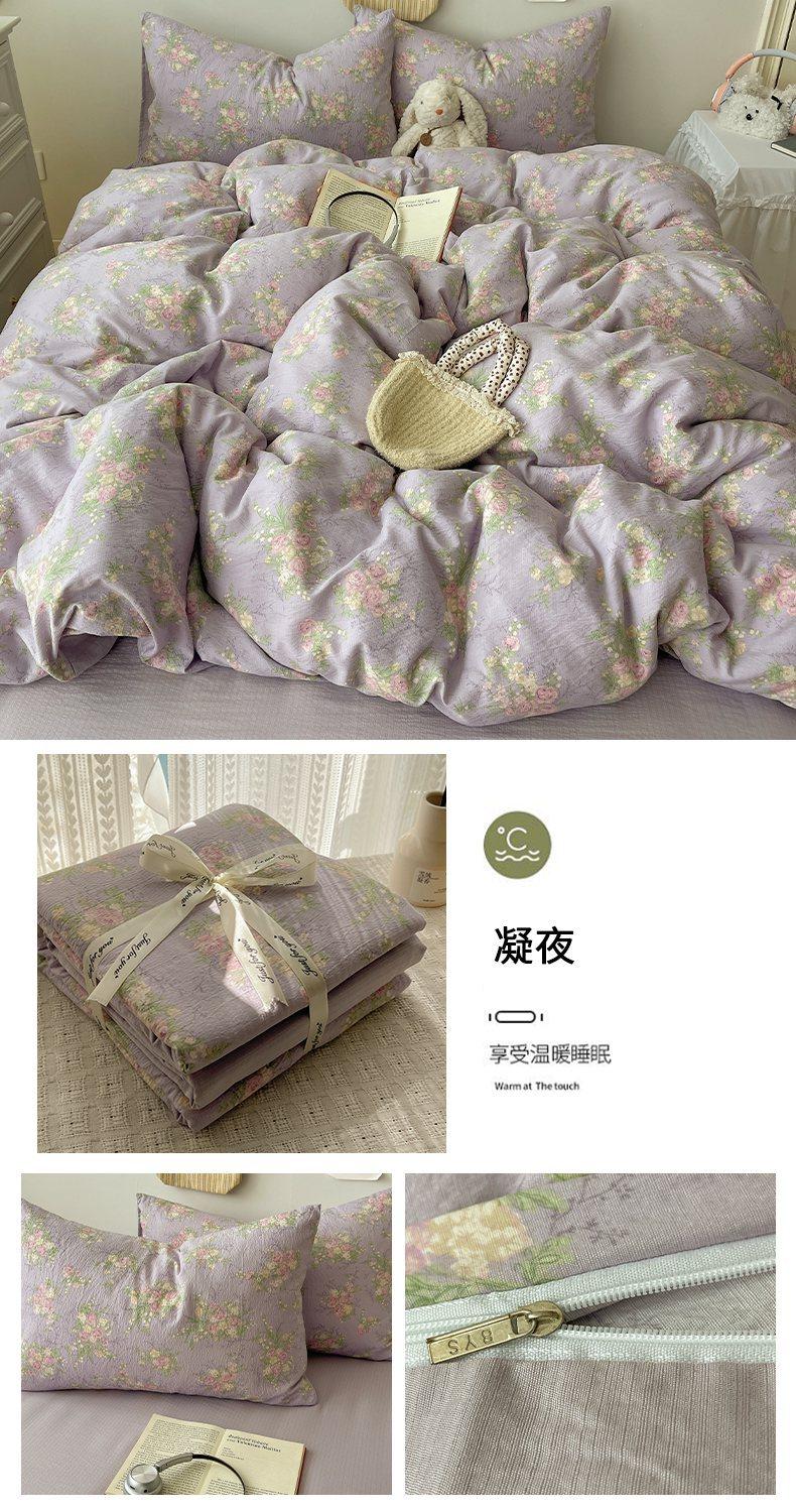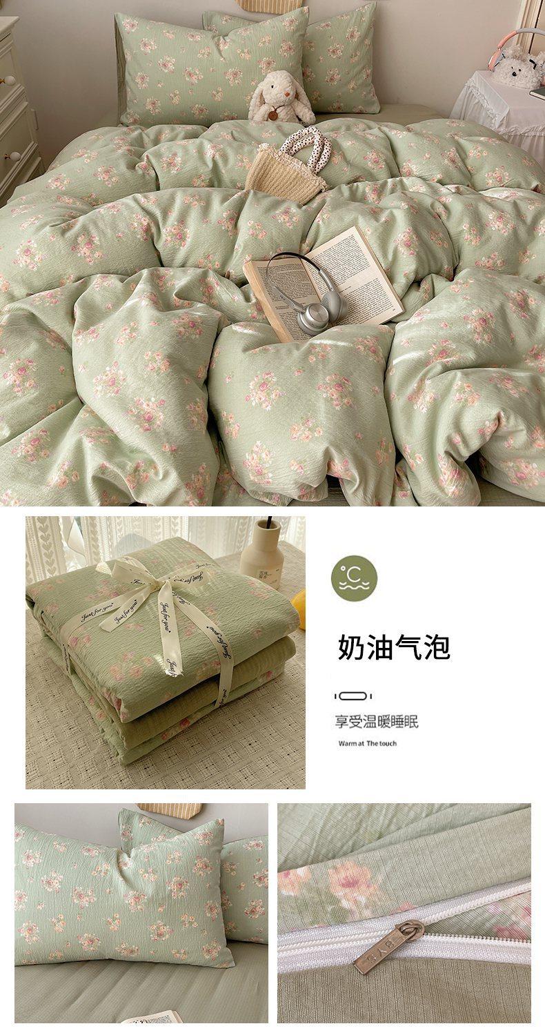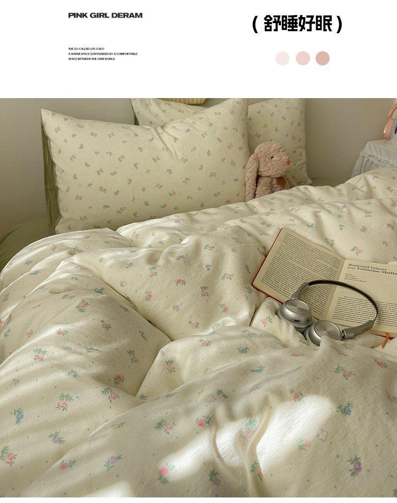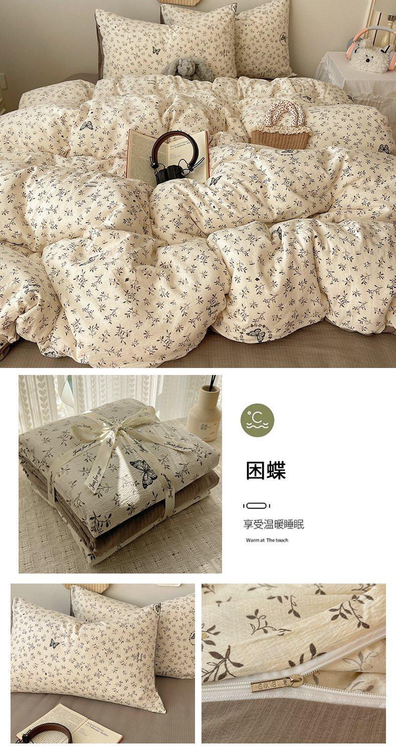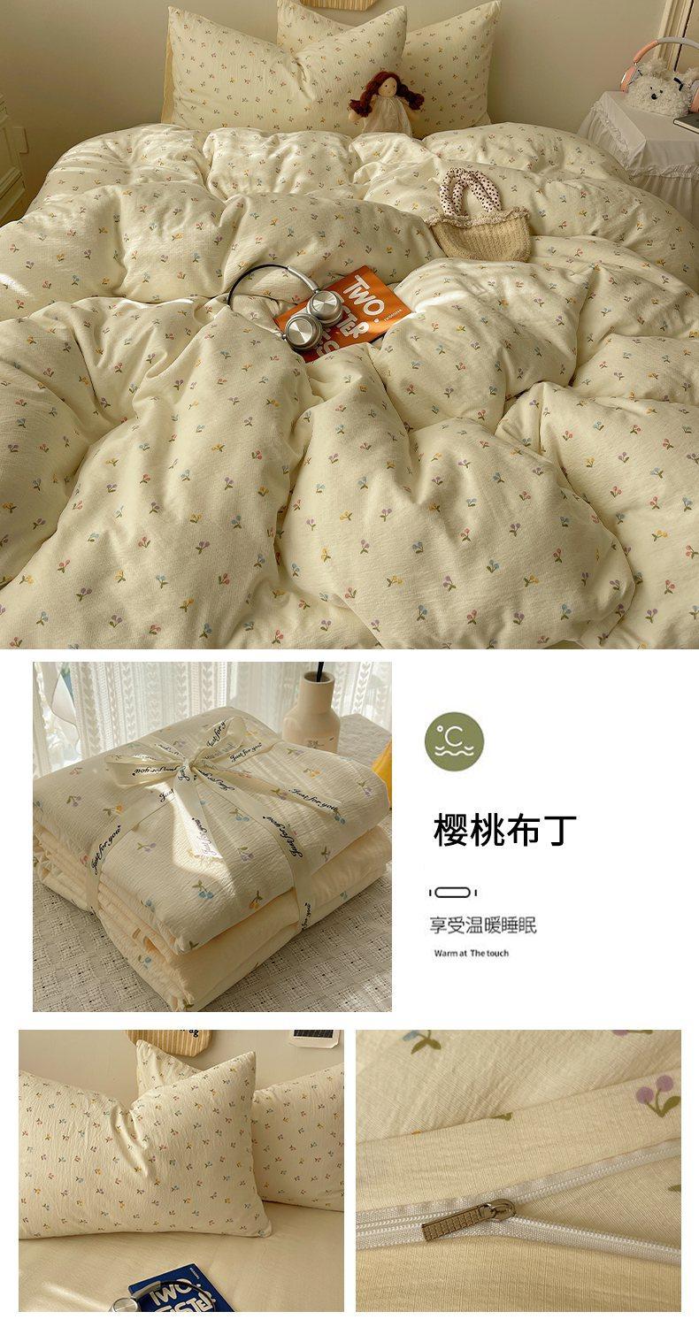 Maternity and Baby Grade a Four-Piece Set of Pure Cotton Double-Layer Yarn Bedding Ins Floral Bed Bed Sheets Quilt Cover Dormitory Three-Piece Set