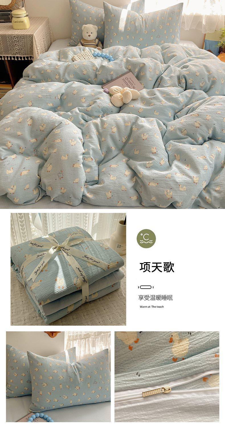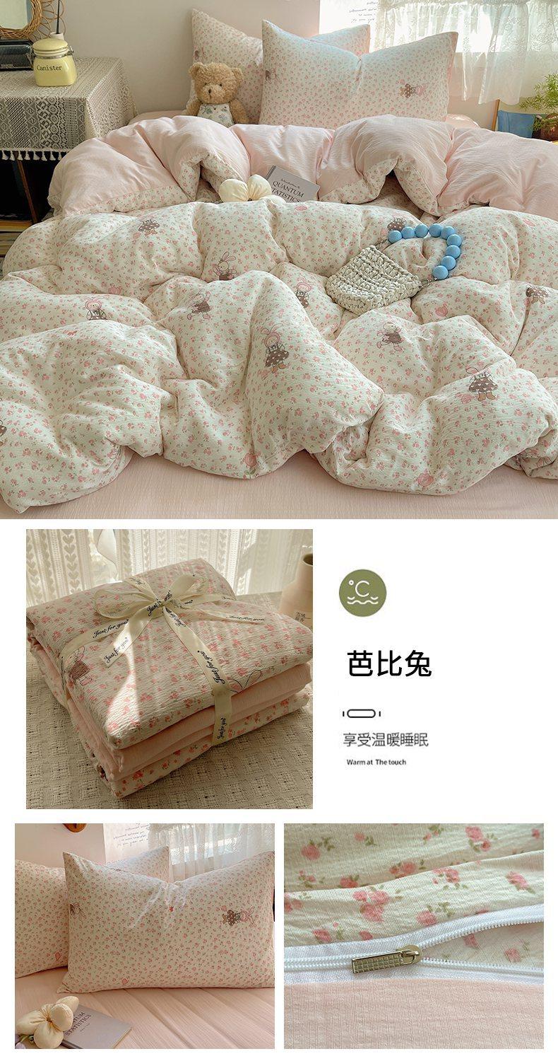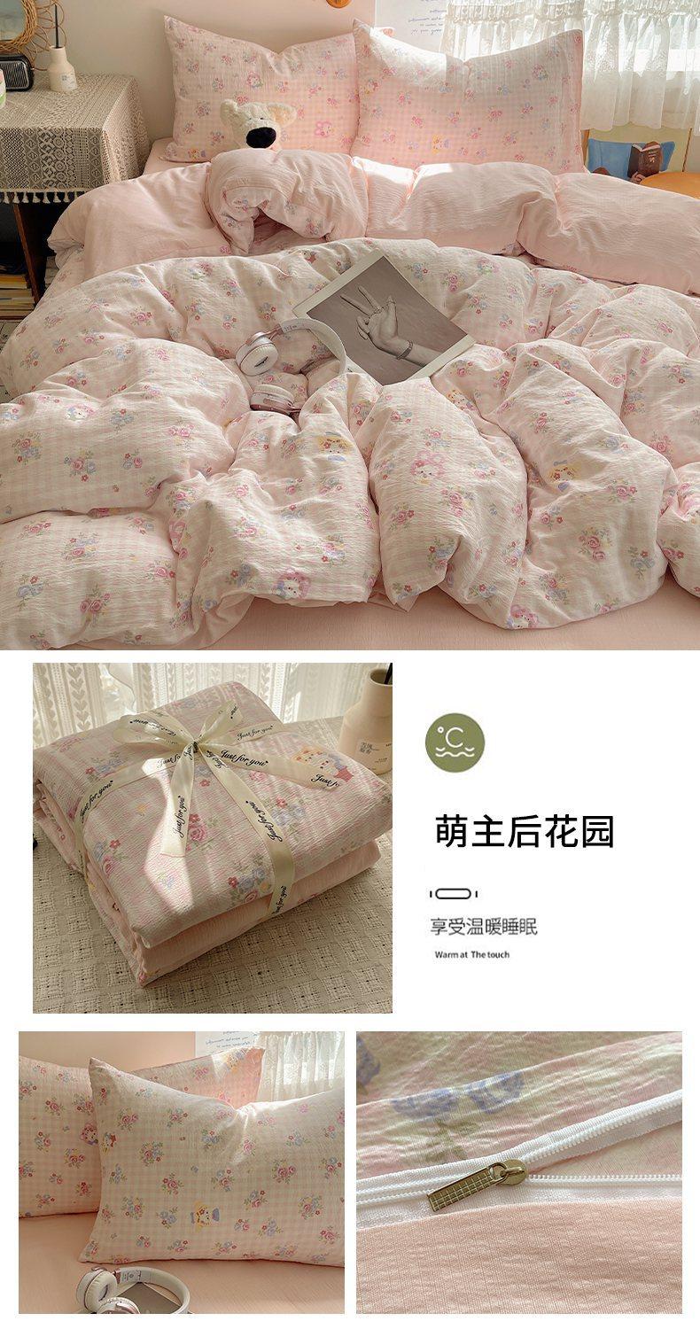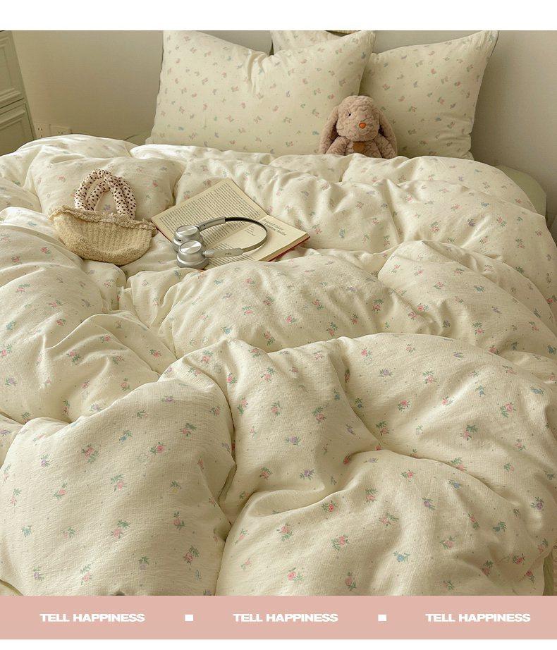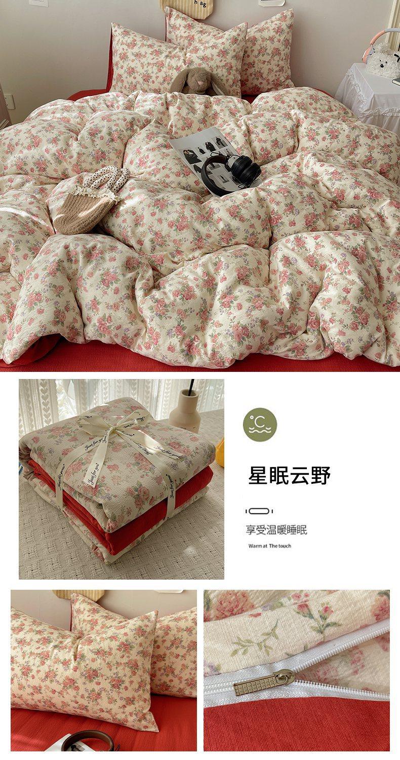 Maternity and Baby Grade a Four-Piece Set of Pure Cotton Double-Layer Yarn Bedding Ins Floral Bed Bed Sheets Quilt Cover Dormitory Three-Piece Set