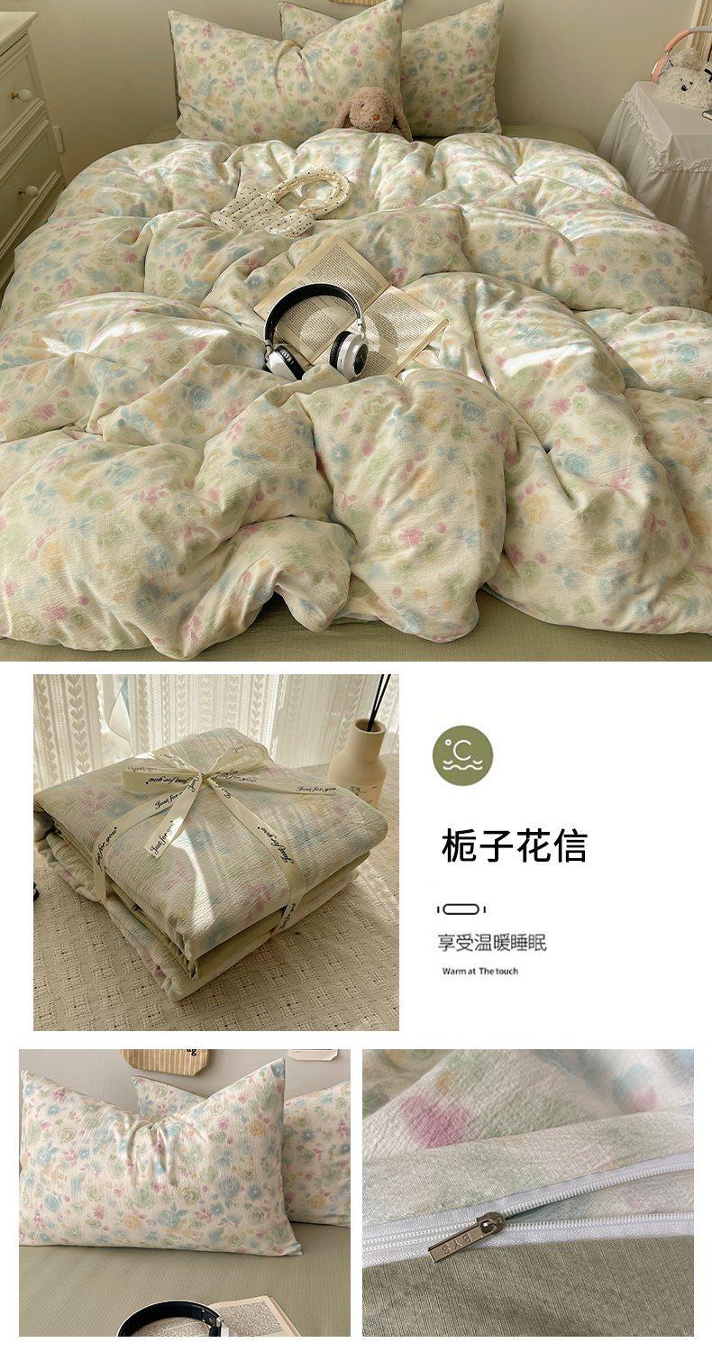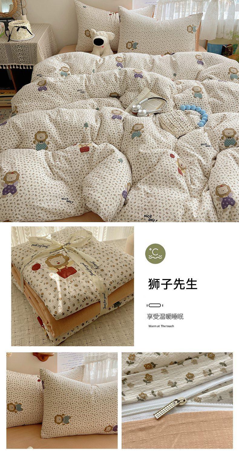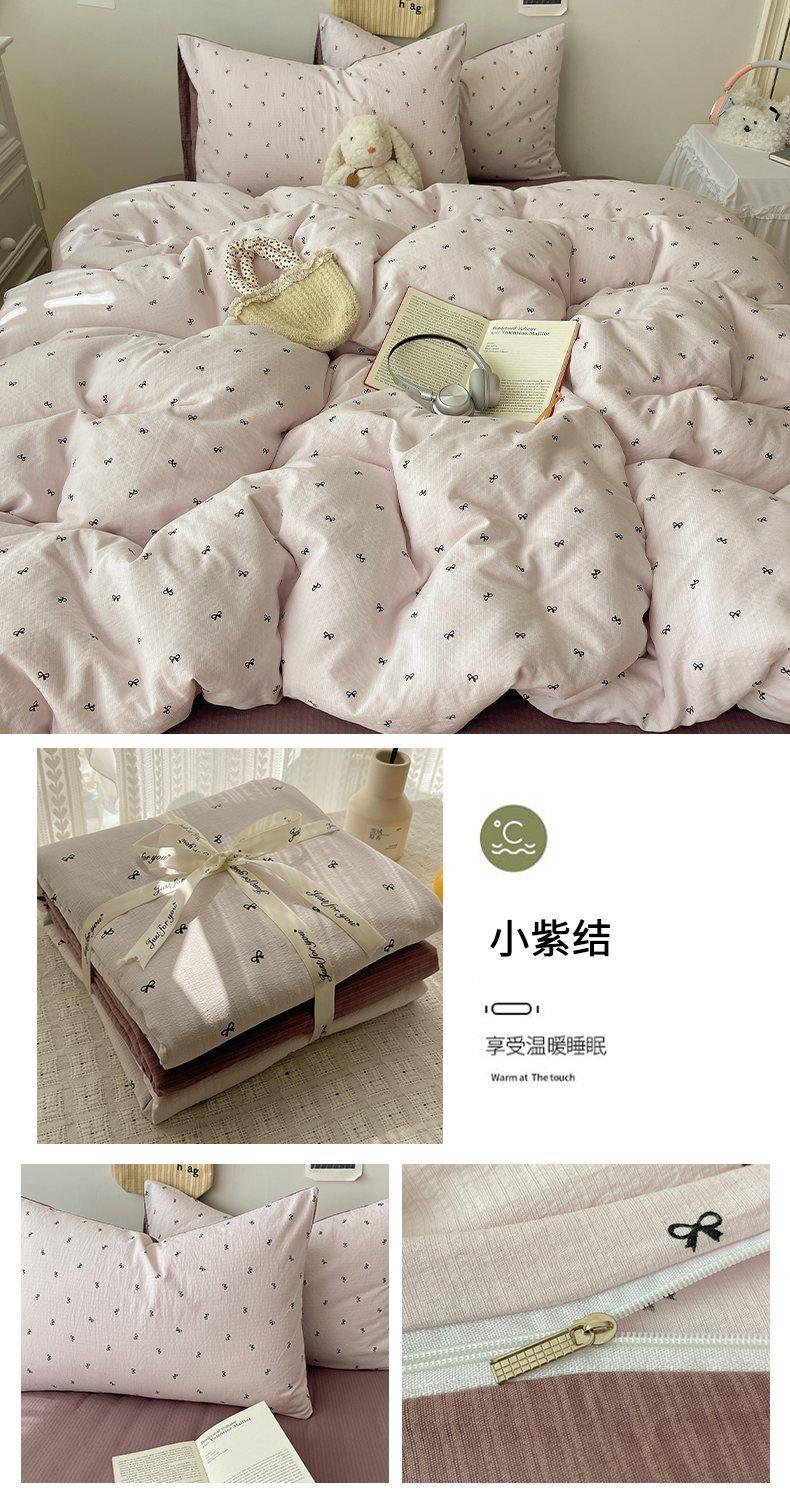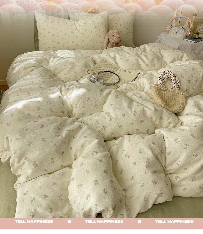 Maternity and Baby Grade a Four-Piece Set of Pure Cotton Double-Layer Yarn Bedding Ins Floral Bed Bed Sheets Quilt Cover Dormitory Three-Piece Set