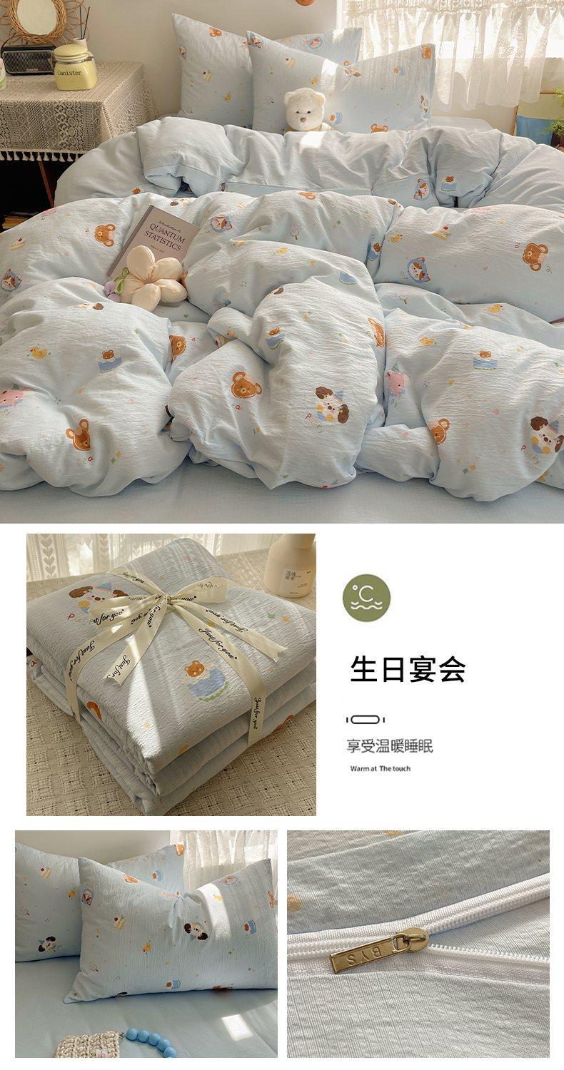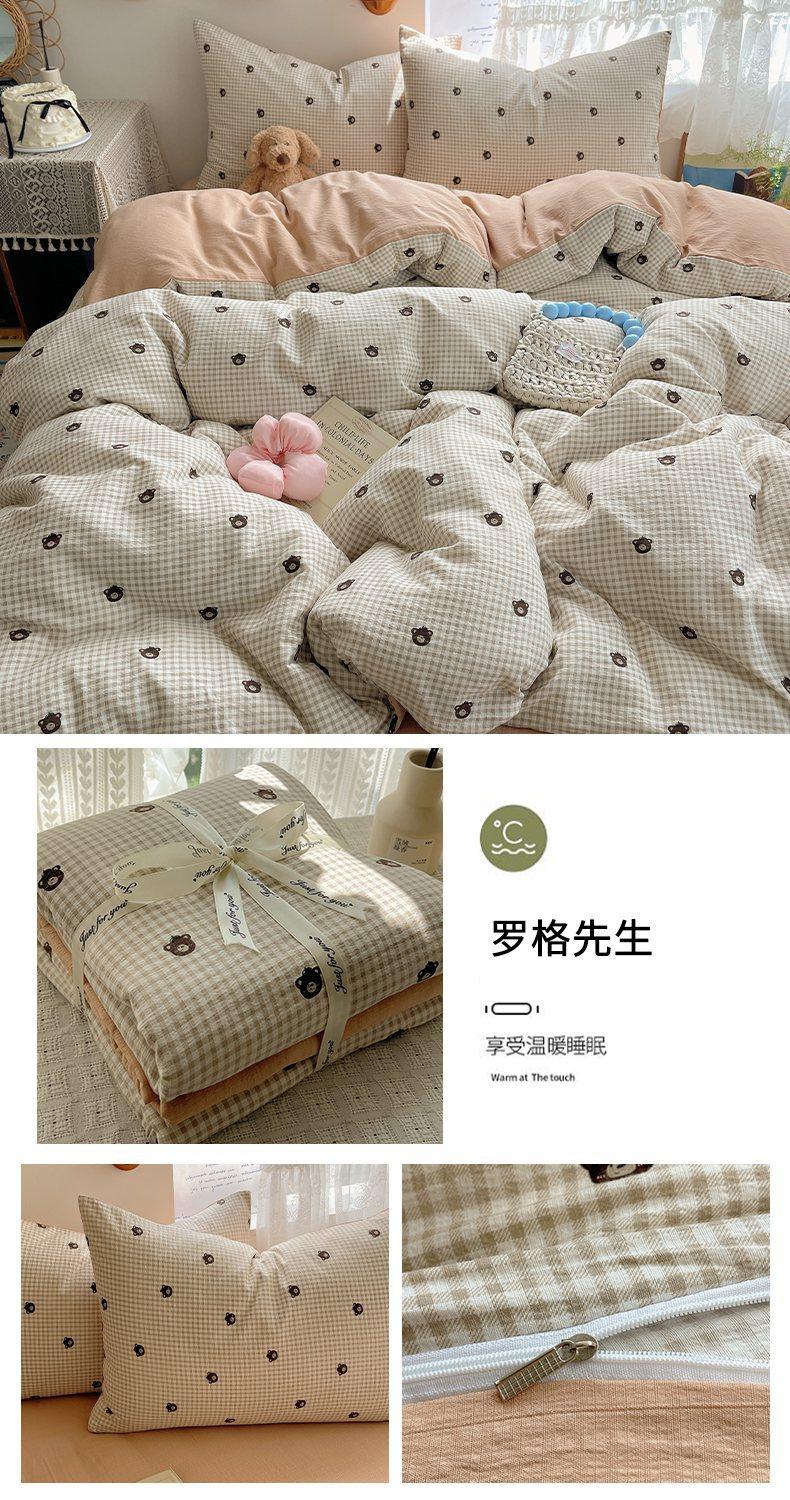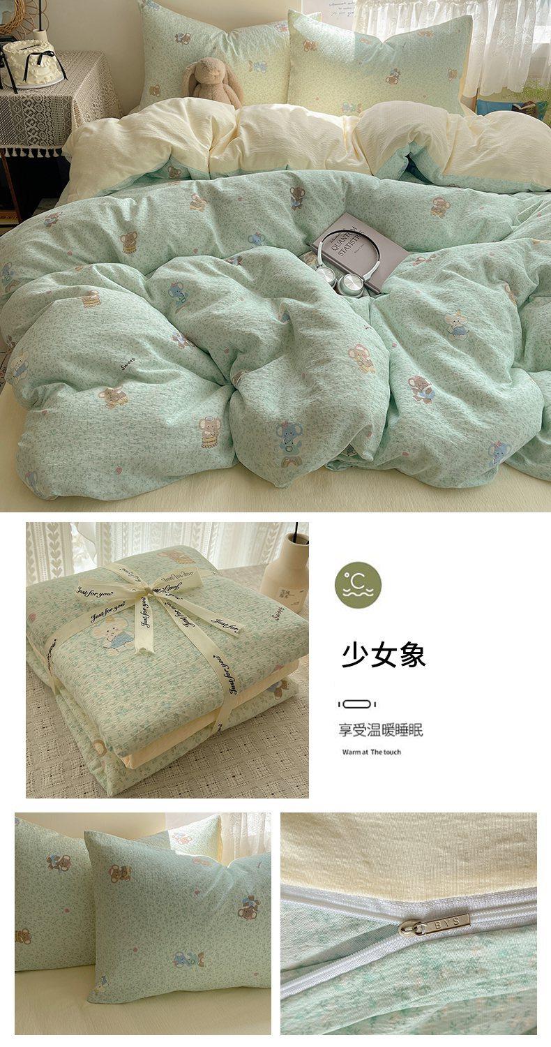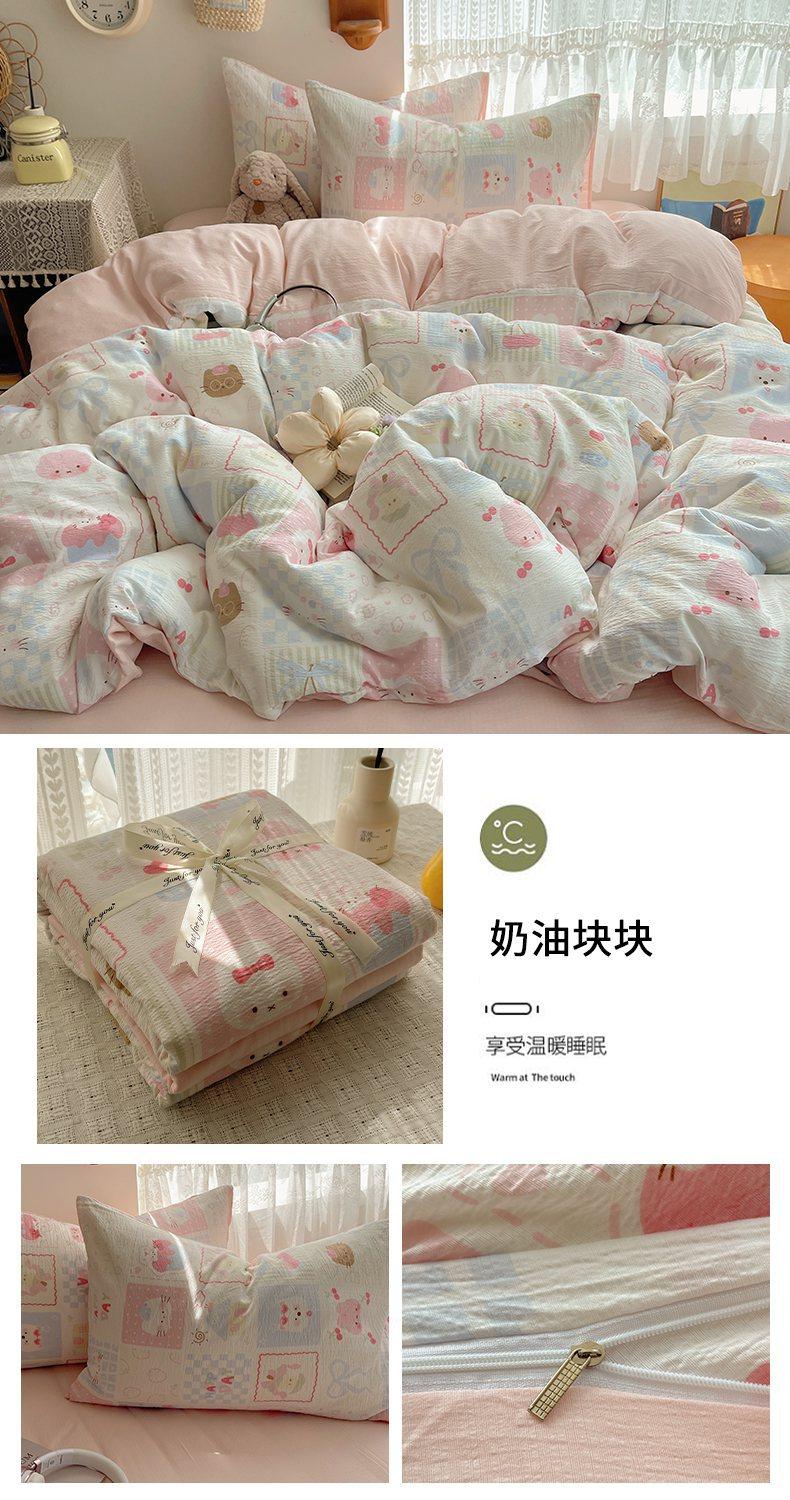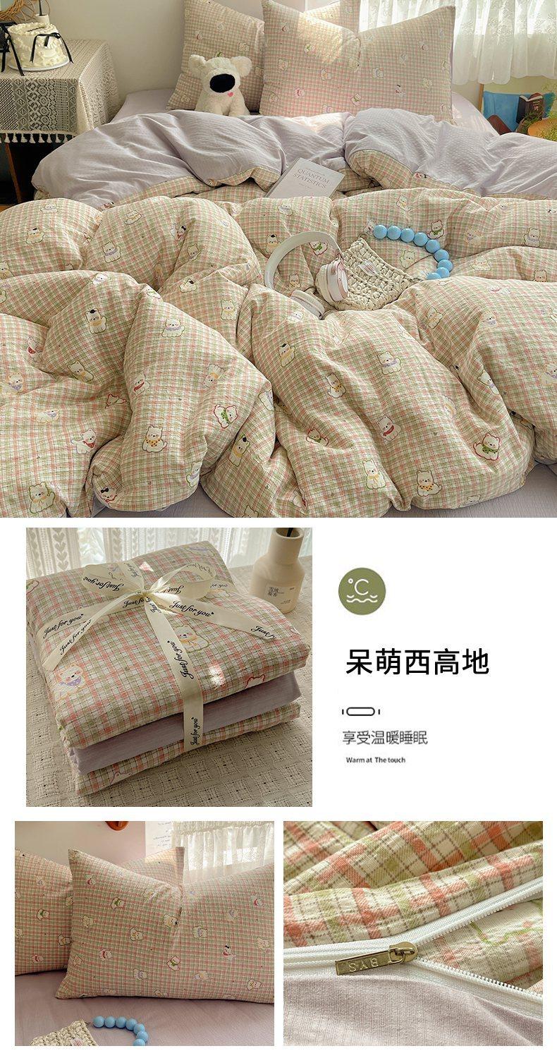 Maternity and Baby Grade a Four-Piece Set of Pure Cotton Double-Layer Yarn Bedding Ins Floral Bed Bed Sheets Quilt Cover Dormitory Three-Piece Set