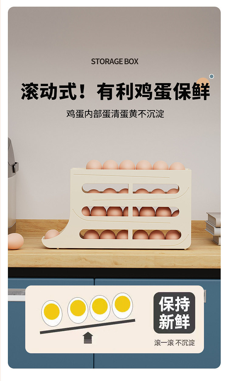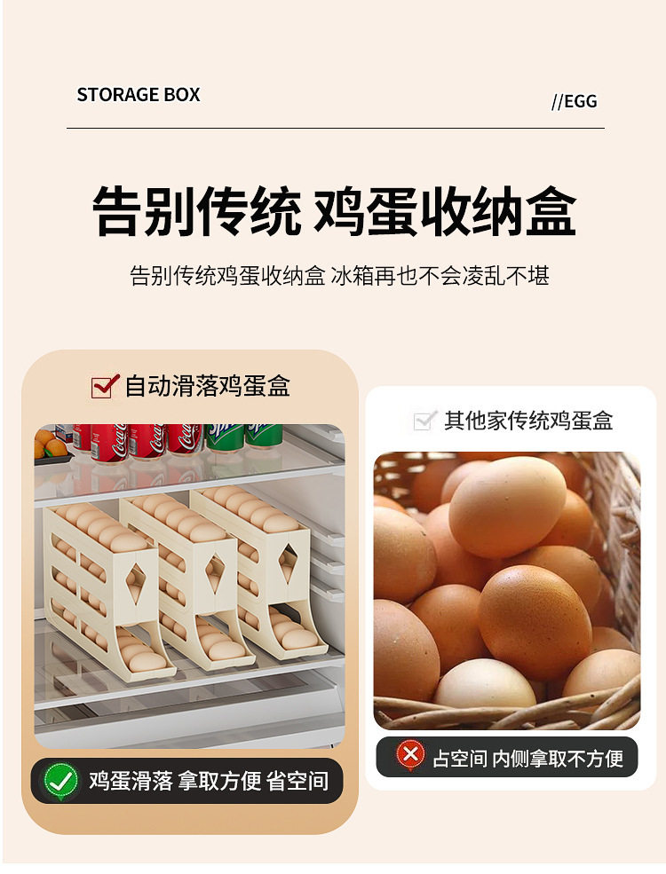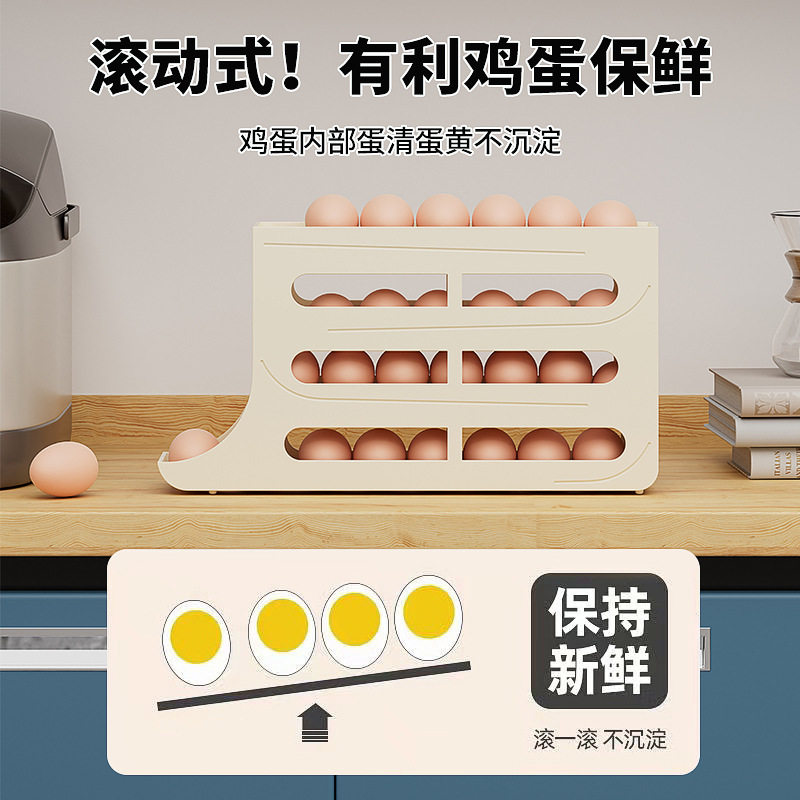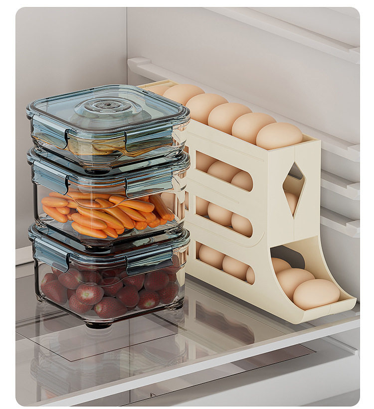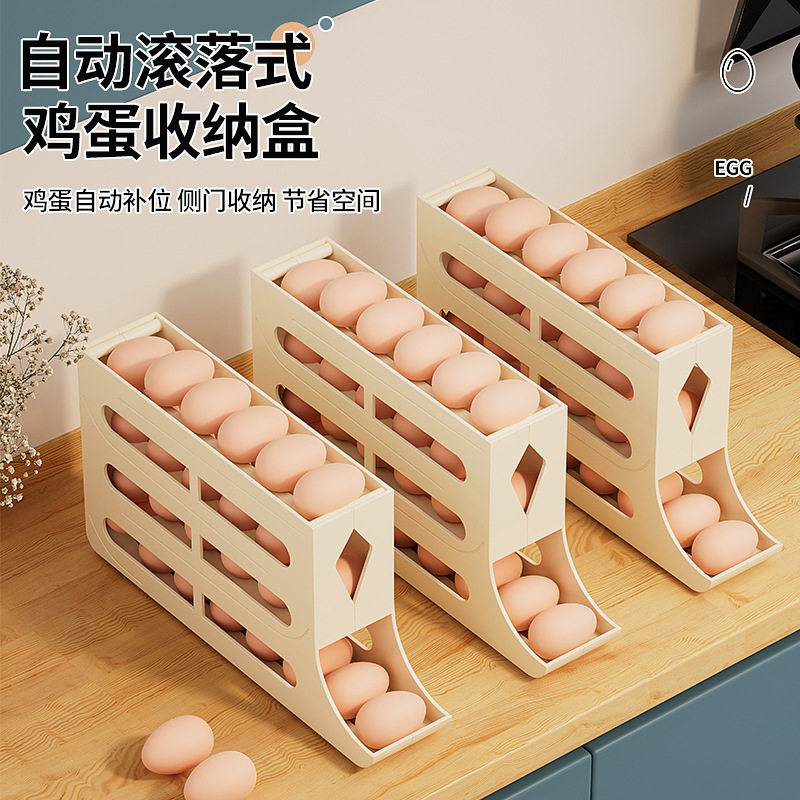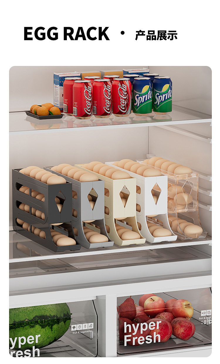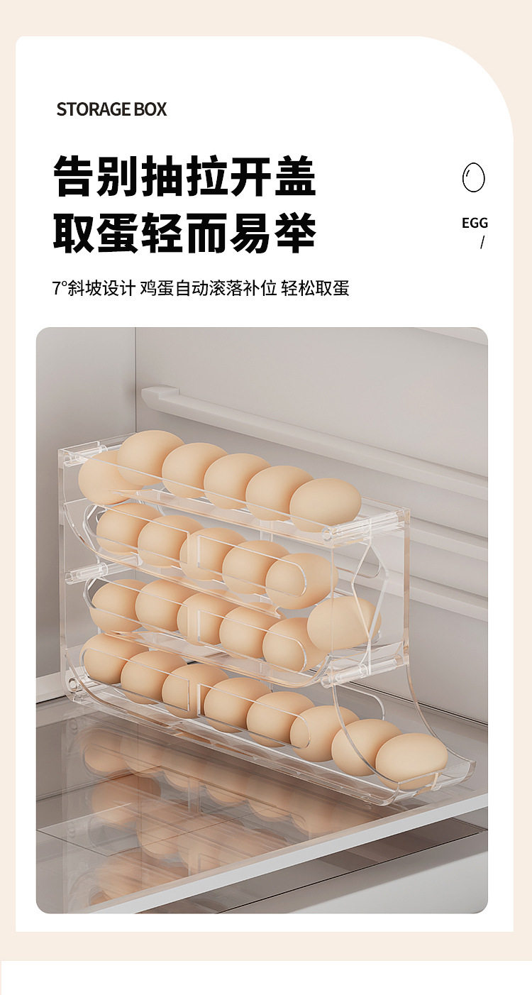Kitchen Egg Storage Box Four-Layer Slide-Type Refrigerator Egg Rack Automatic Rolling Egg Tray Anti-Fall Egg Box