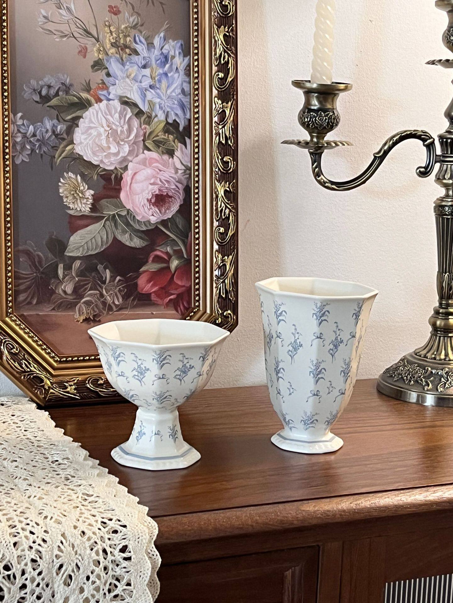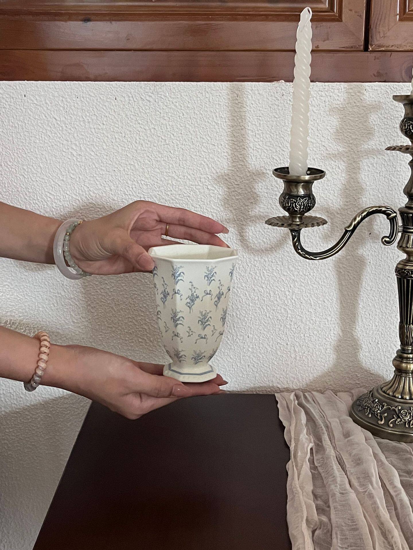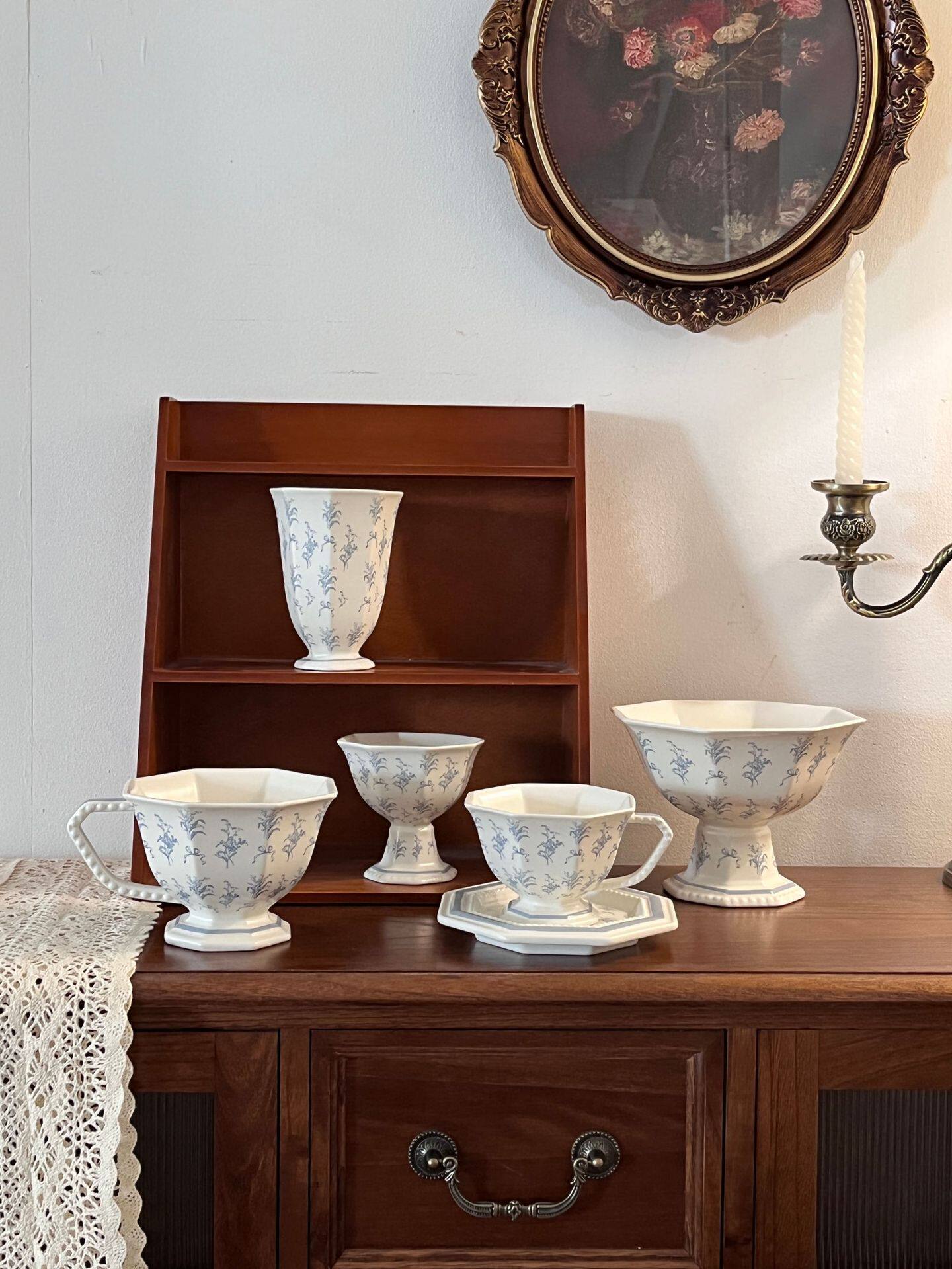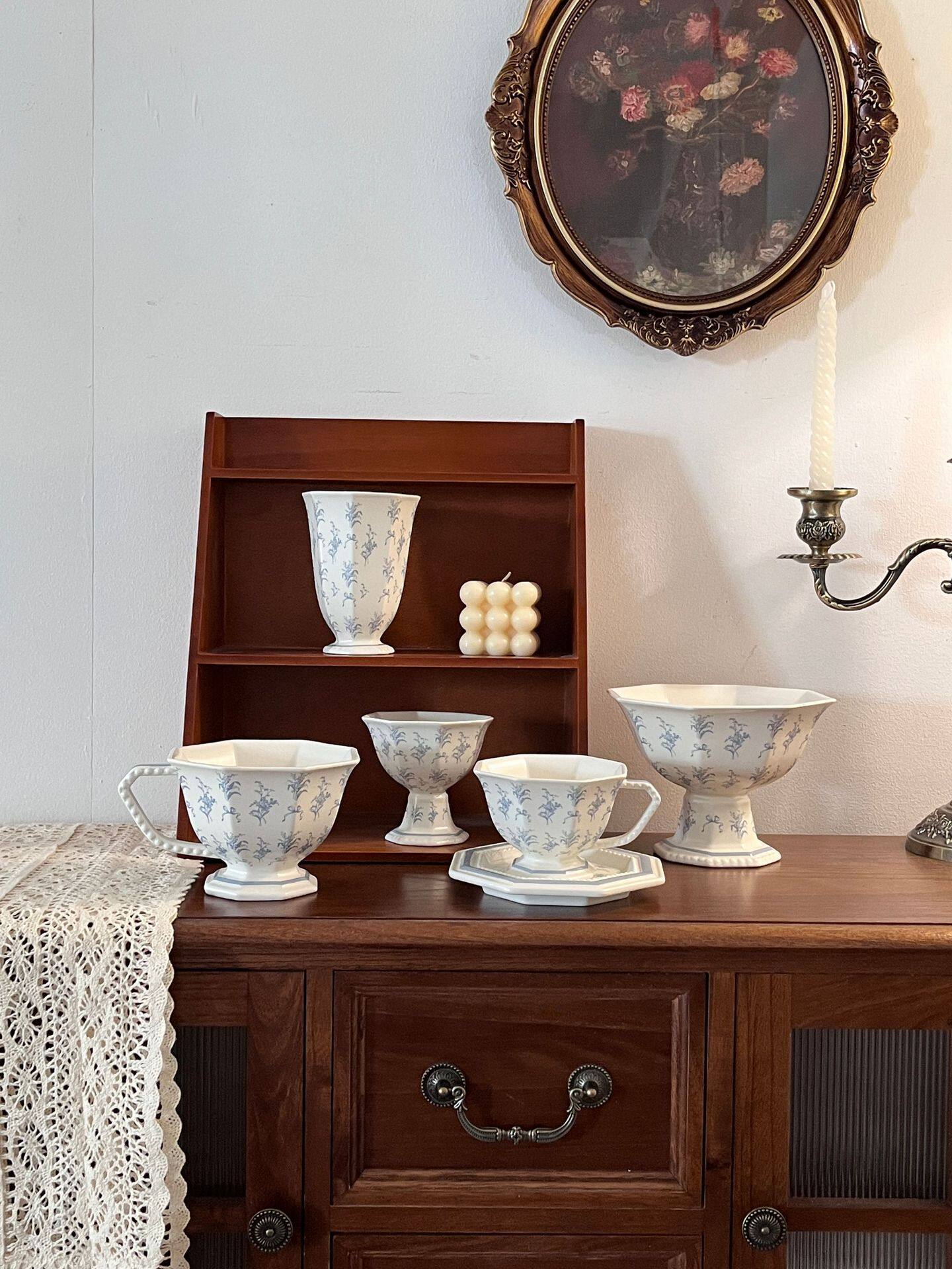 French Tea Cup Vintage Floral Mug Coffee Cup and Saucer Set Retro Octagonal Pearl Ceramic Plate