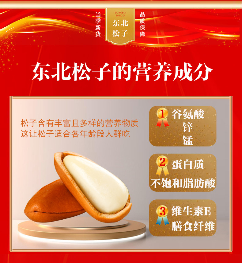 | Taste | [try pack 0.5kg] 250g*2 packs [carefully selected 1050 fruits, guaranteed to be new],Look for the northeastern pine nut flagship store [10% off for fake ones],[large particles 0.5kg ] 250g*2 packs [carefully selected 950 large fruits, guaranteed to be new],[large particles 1.0kg ] 250g*4 packs [carefully selected 950 large fruits, guaranteed to be new],[large particles 1.5kg ] 250g*6 packs [950 large fruits carefully selected, guaranteed to be new],[try pack 1.0kg] 250g*4 packs [carefully selected 1050 fruits, guaranteed to be new],[try pack 1.5kg] 250g*6 packs [carefully selected 1050 fruits, guaranteed to be new] |