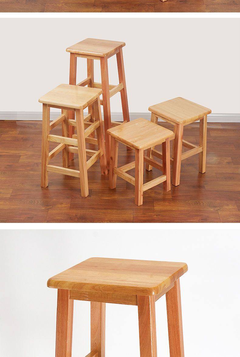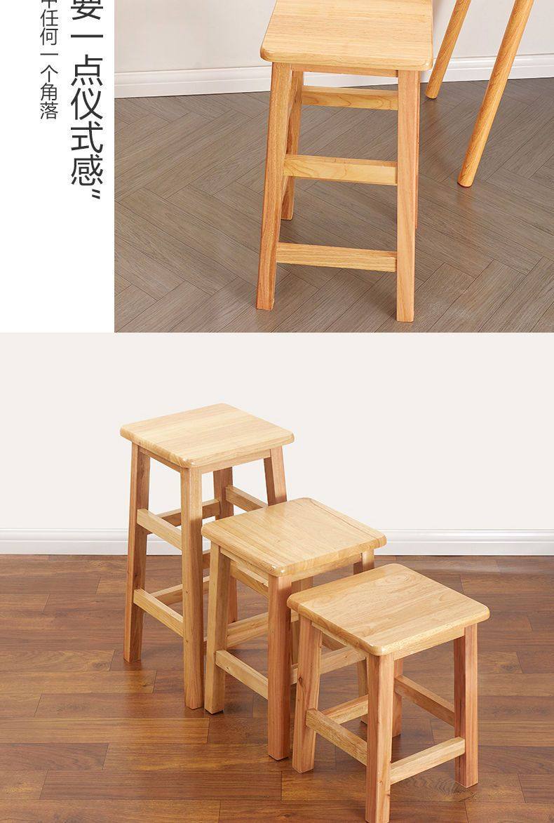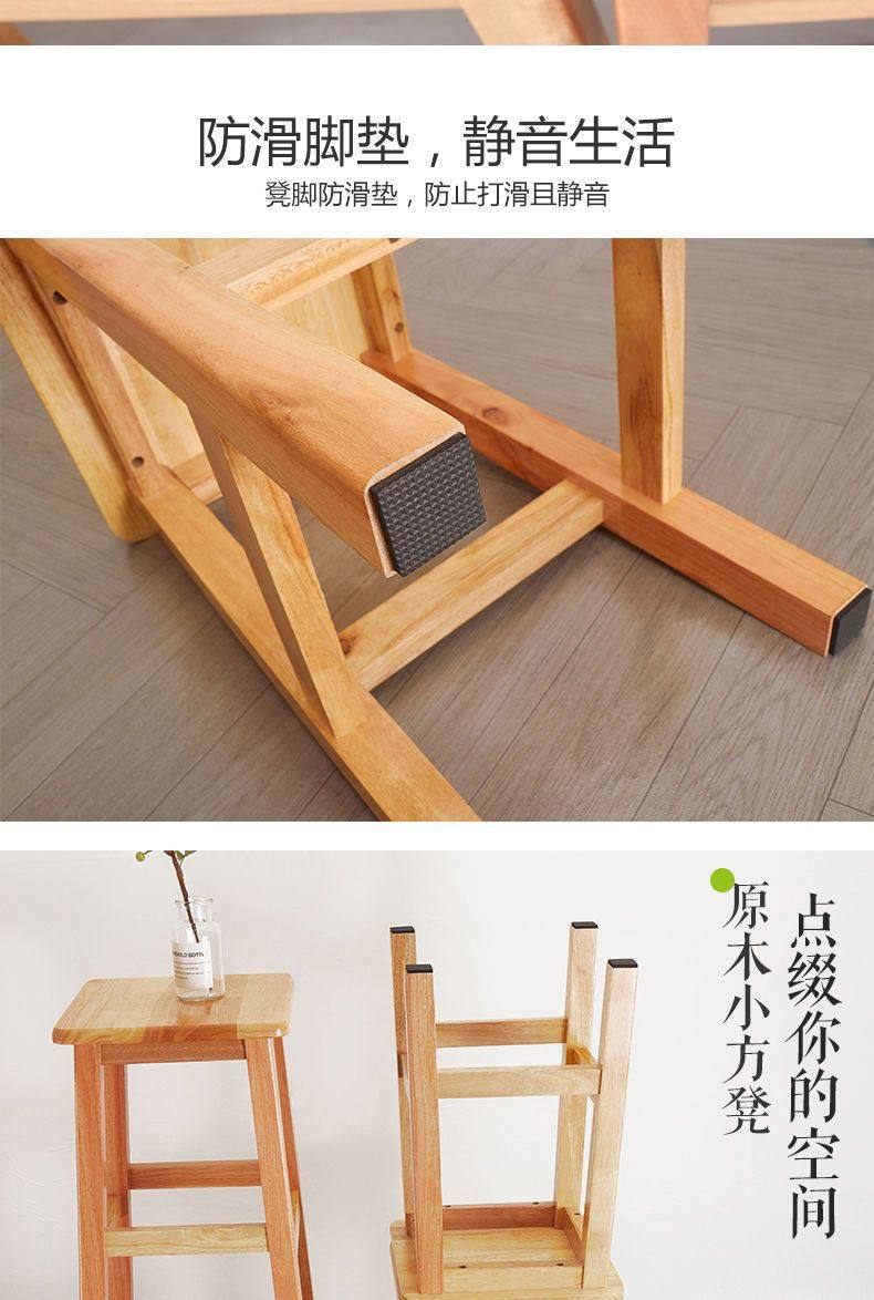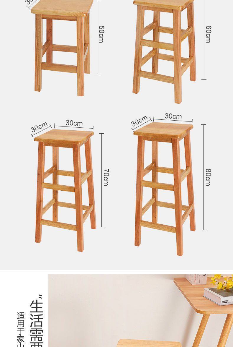 Solid Wood High Chair Footstool Square Stool for Home Living Room and Dining Room, Natural Wood Trendy Square Stool with Mortise and Tenon Joints