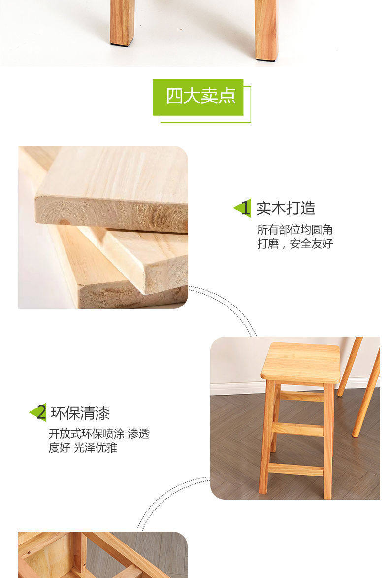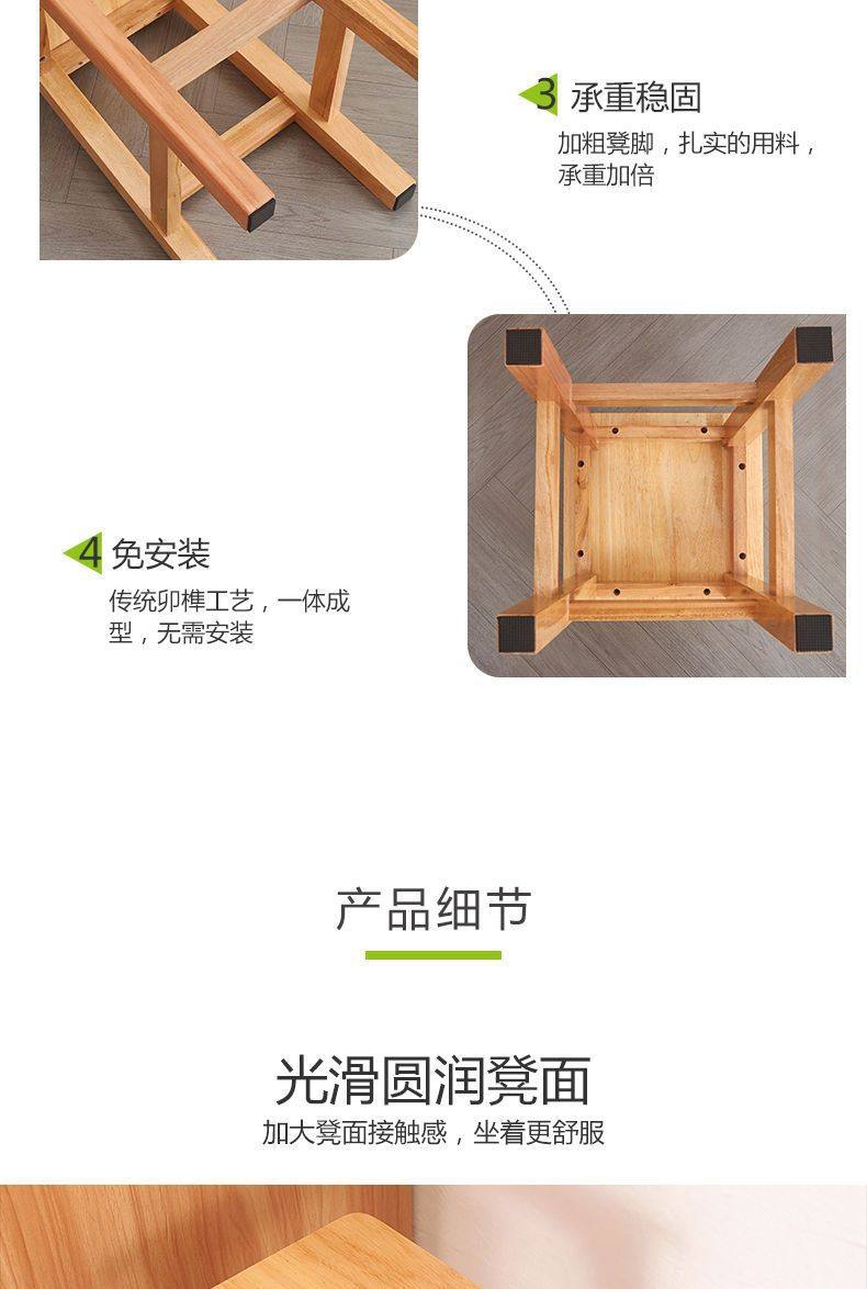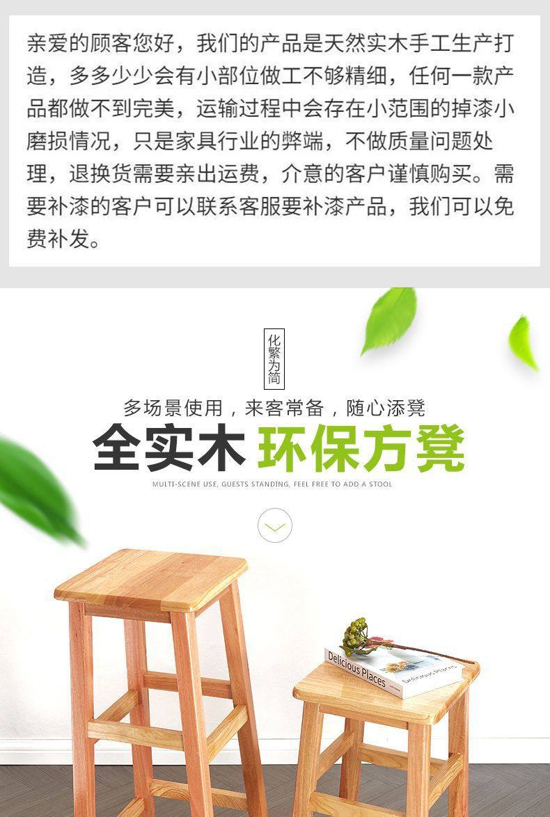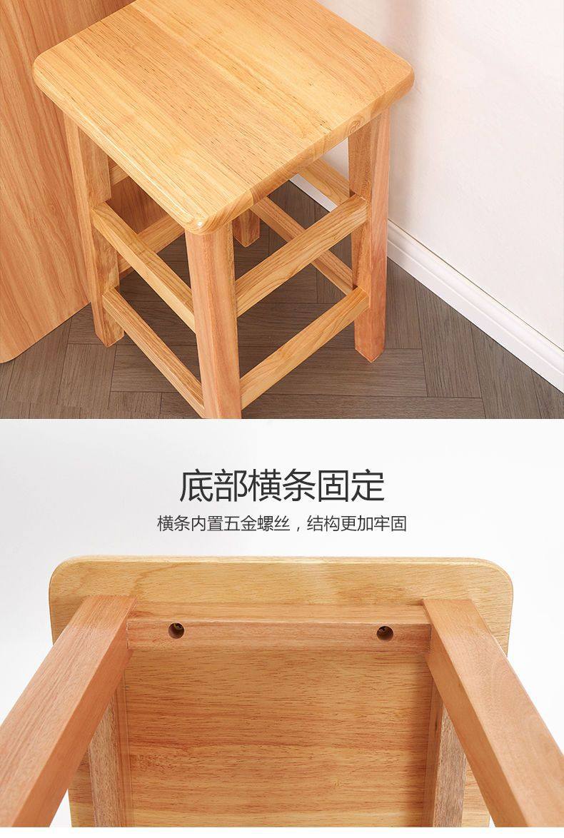 Solid Wood High Chair Footstool Square Stool for Home Living Room and Dining Room, Natural Wood Trendy Square Stool with Mortise and Tenon Joints