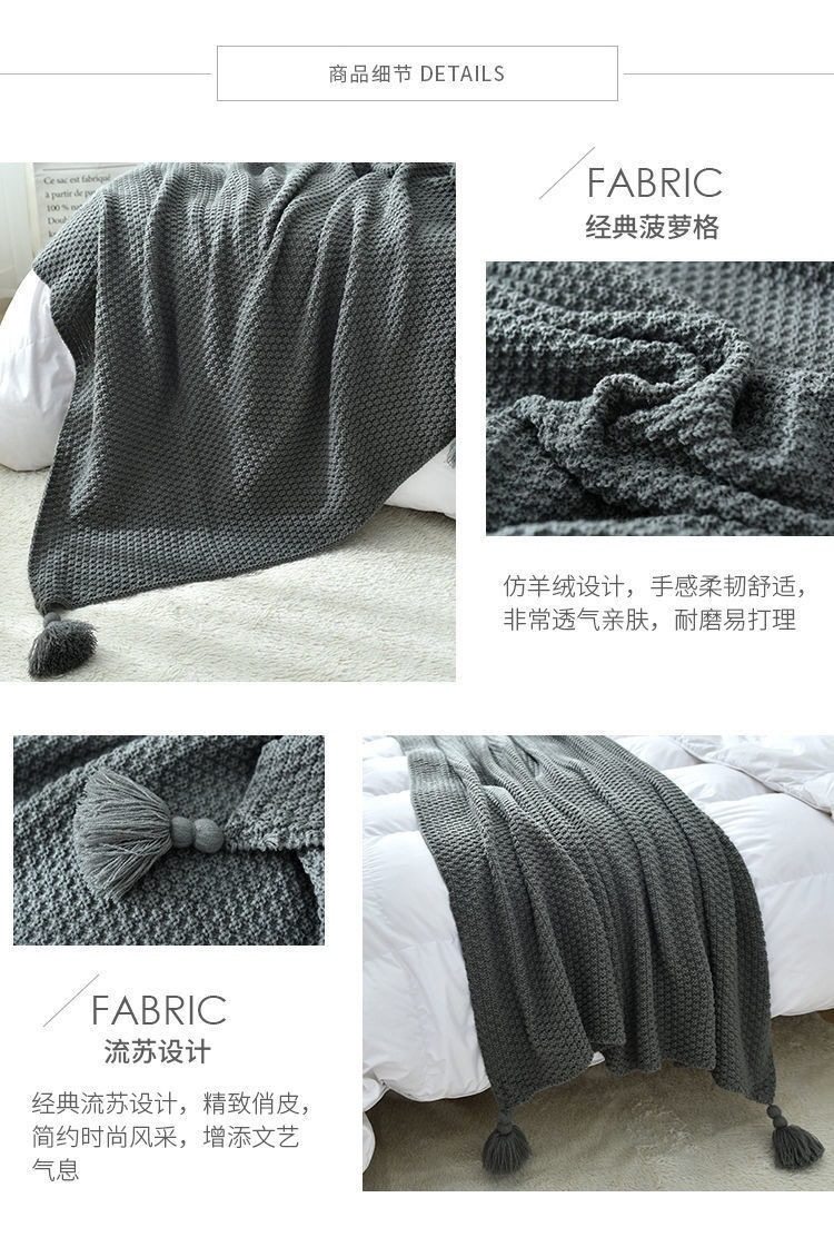 Nordic Style Sofa Blanket Office Nap Blanket Tassel Knitted Ball Wool Casual Air Conditioning Small Blanket