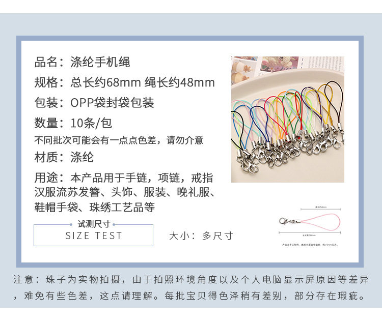 | Model | Total length is about 68mm, rope length is about 48mm, 10 pieces/pack |