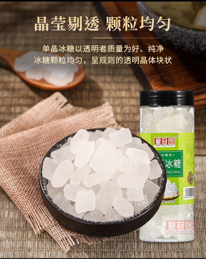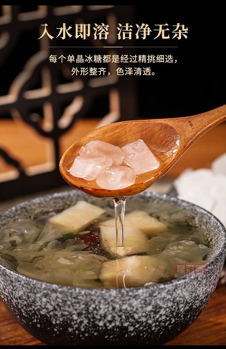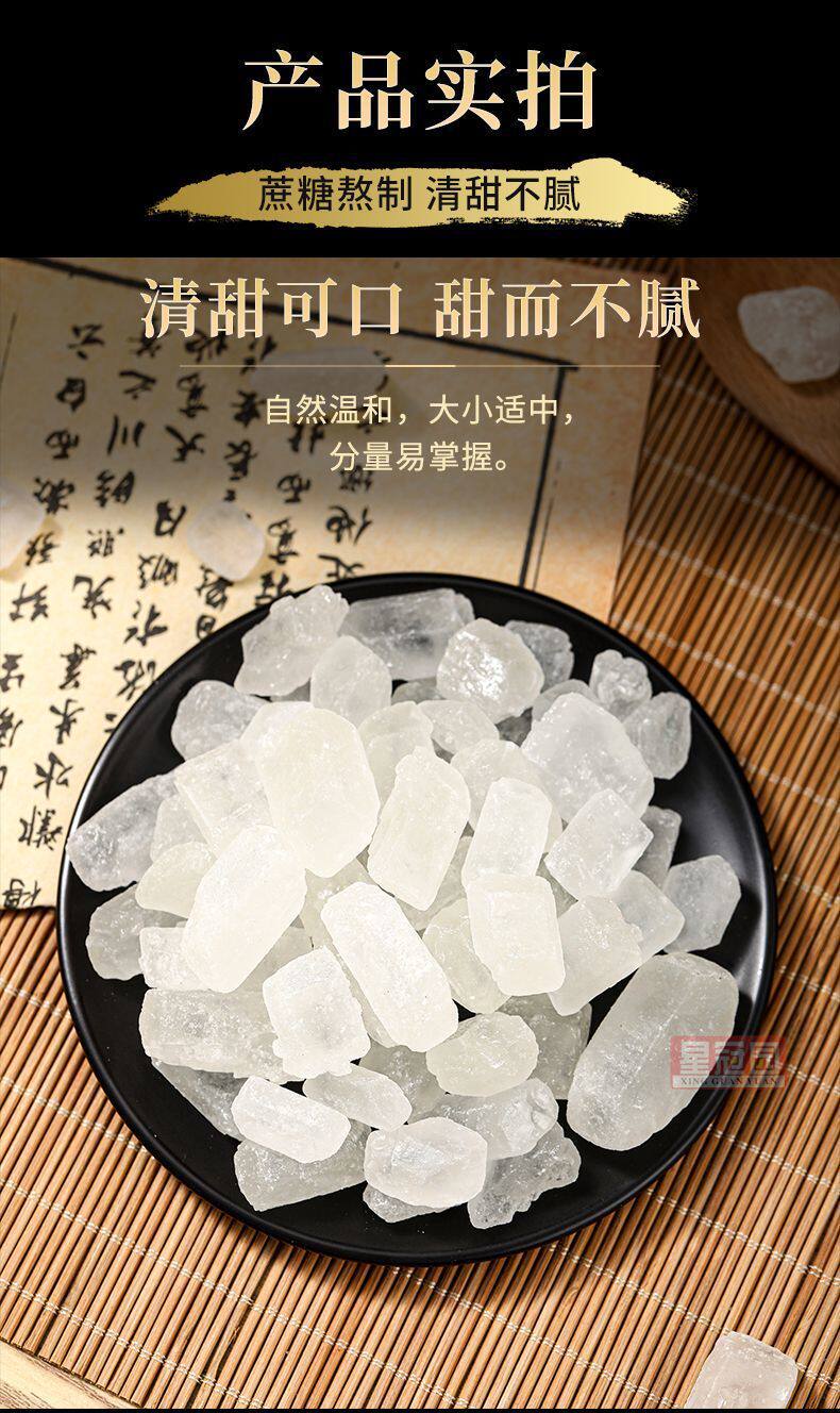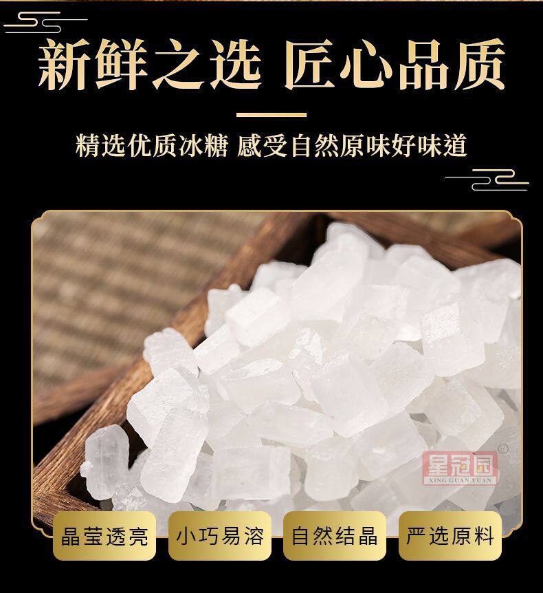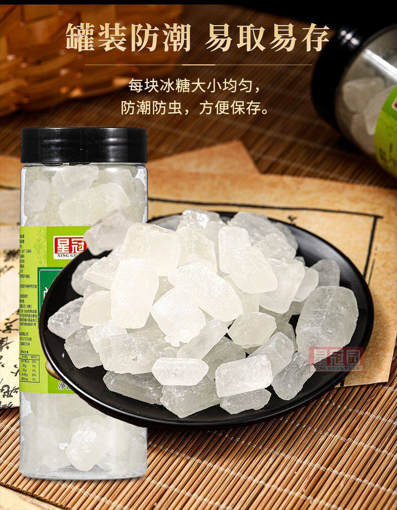| Packaging specifications | [1 bag] 200g rock sugar [supermarket export quality],[1 bag] 400g rock sugar [supermarket export quality],Canned rock sugar 250*2 [supermarket export quality],Canned rock sugar 250g*1 [supermarket export quality],Canned rock sugar 250g*3 [supermarket export quality],Canned rock sugar 250g*5 [supermarket export quality],Taste 50g [bag] [supermarket export quality] |