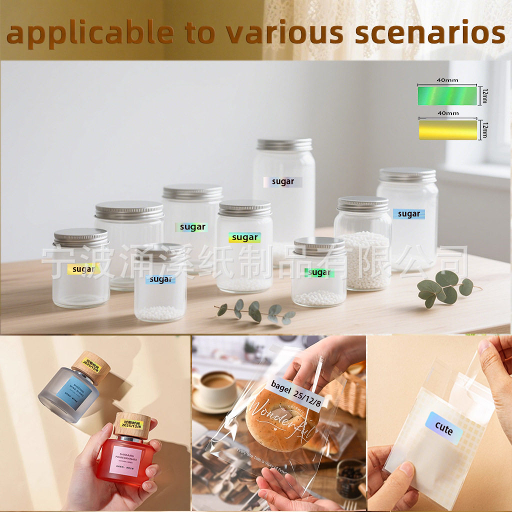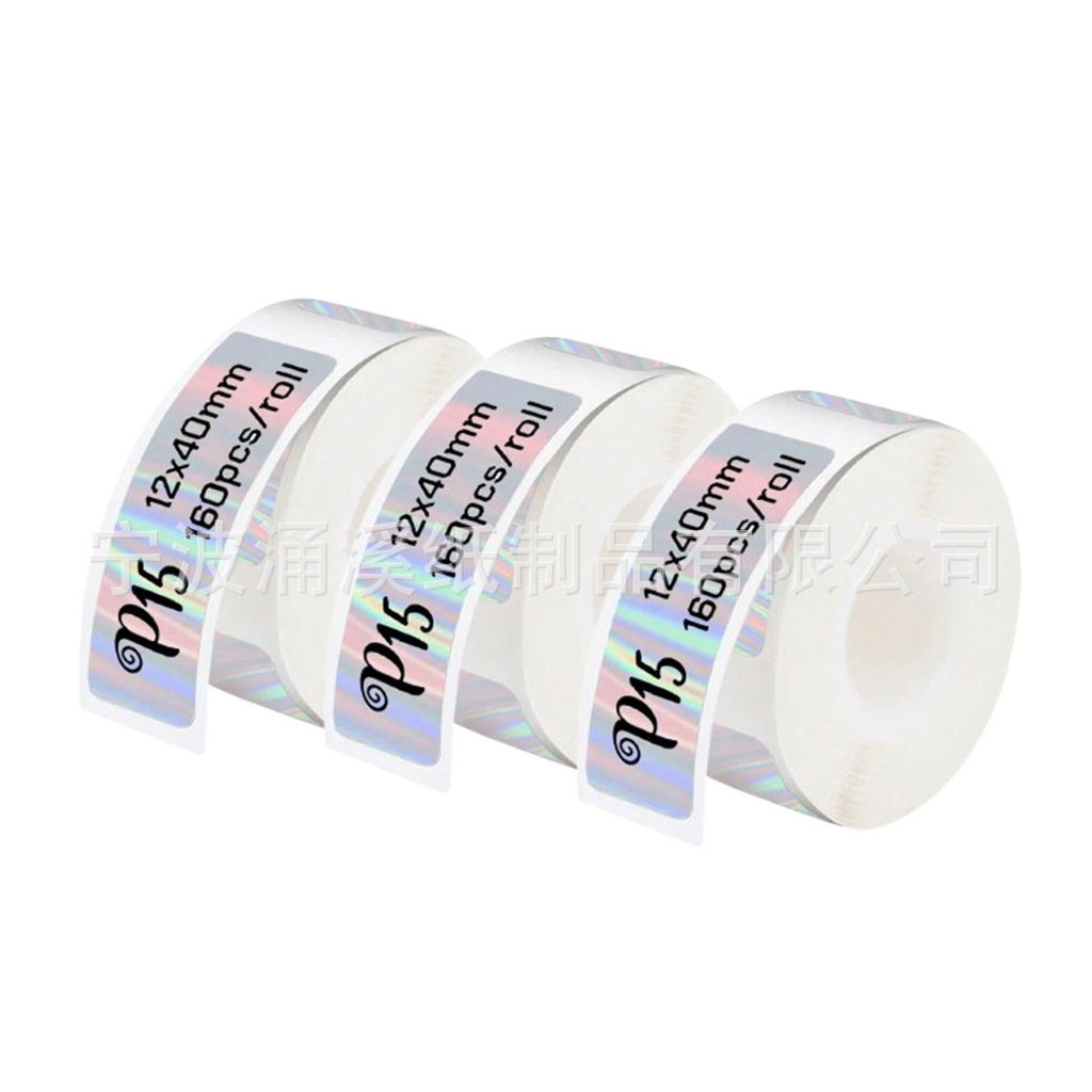 Waterproof Self-Adhesive Price Tag Stickers P12/D30 Thermal Paper Holographic Laser Small Roll Thermal Label Paper Four-Proof