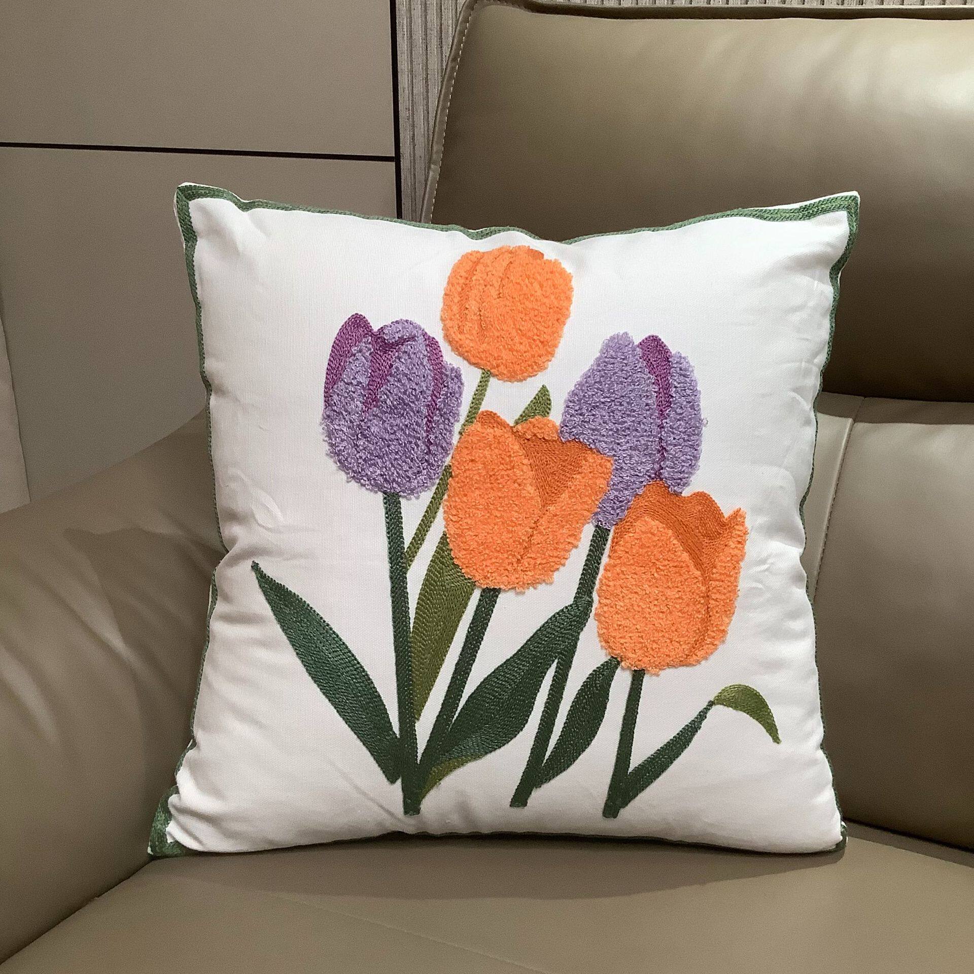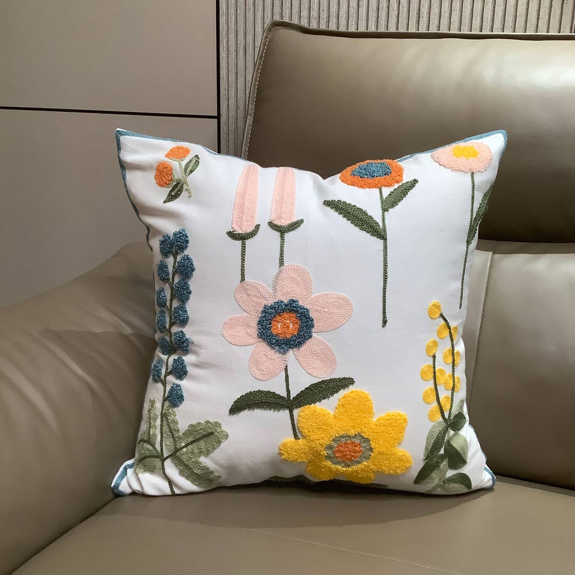 New Towel Embroidered Pillowcase, Pastoral Style Home Sofa Pillow, Can Be Equipped with Core Bedside Cushion, Office Waist Pillow
