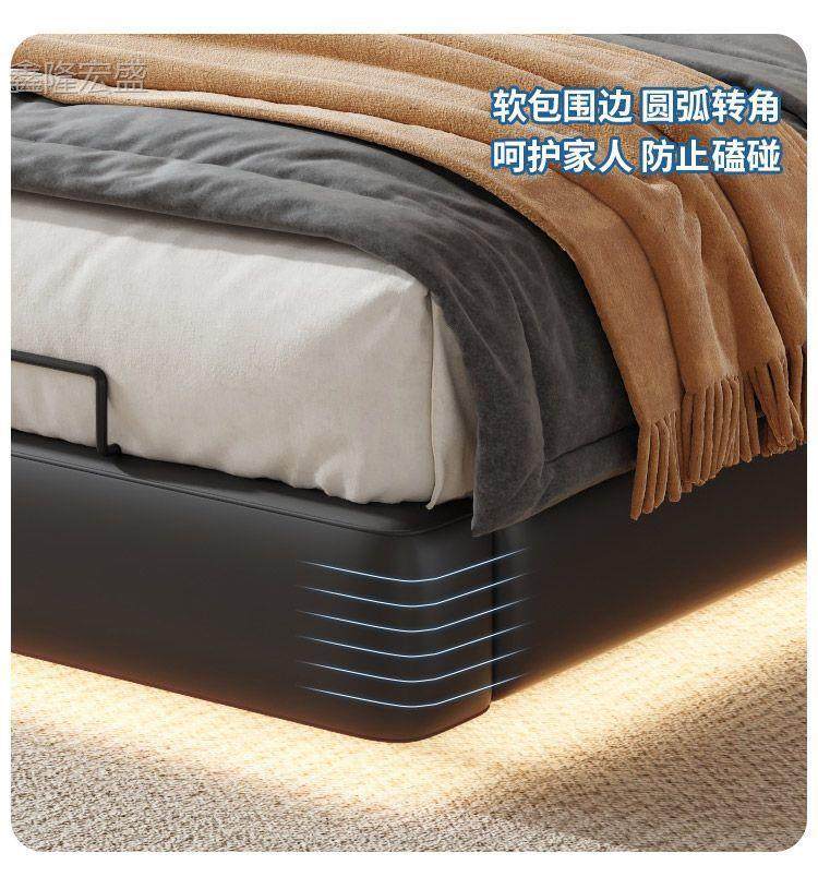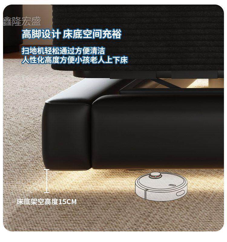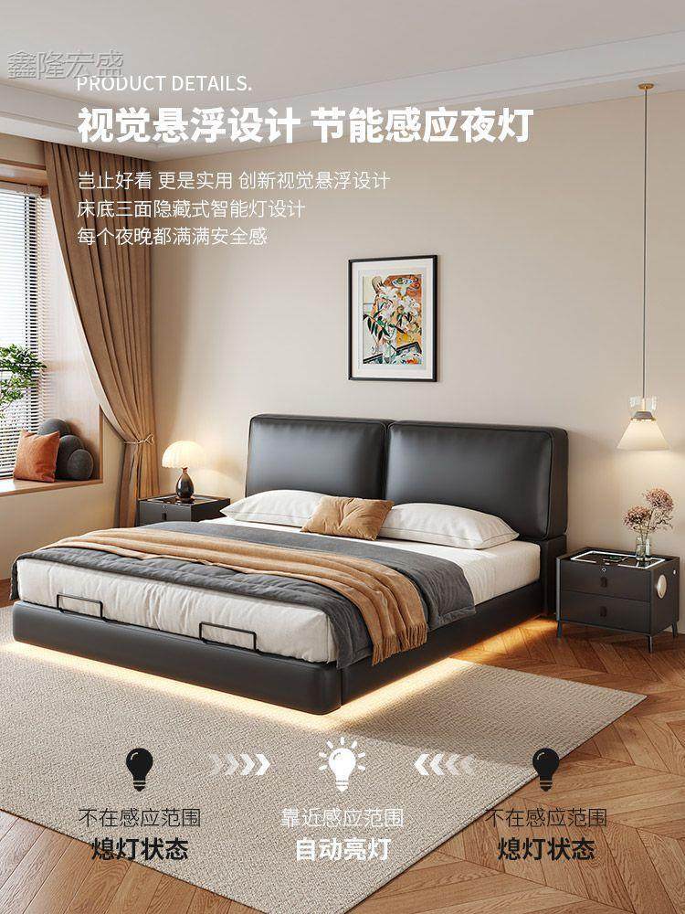 Modern Minimalist Large Black Leather Luxury Smart Multifunctional Electric Smart Combination Master Bedroom Leather Floating King Bed