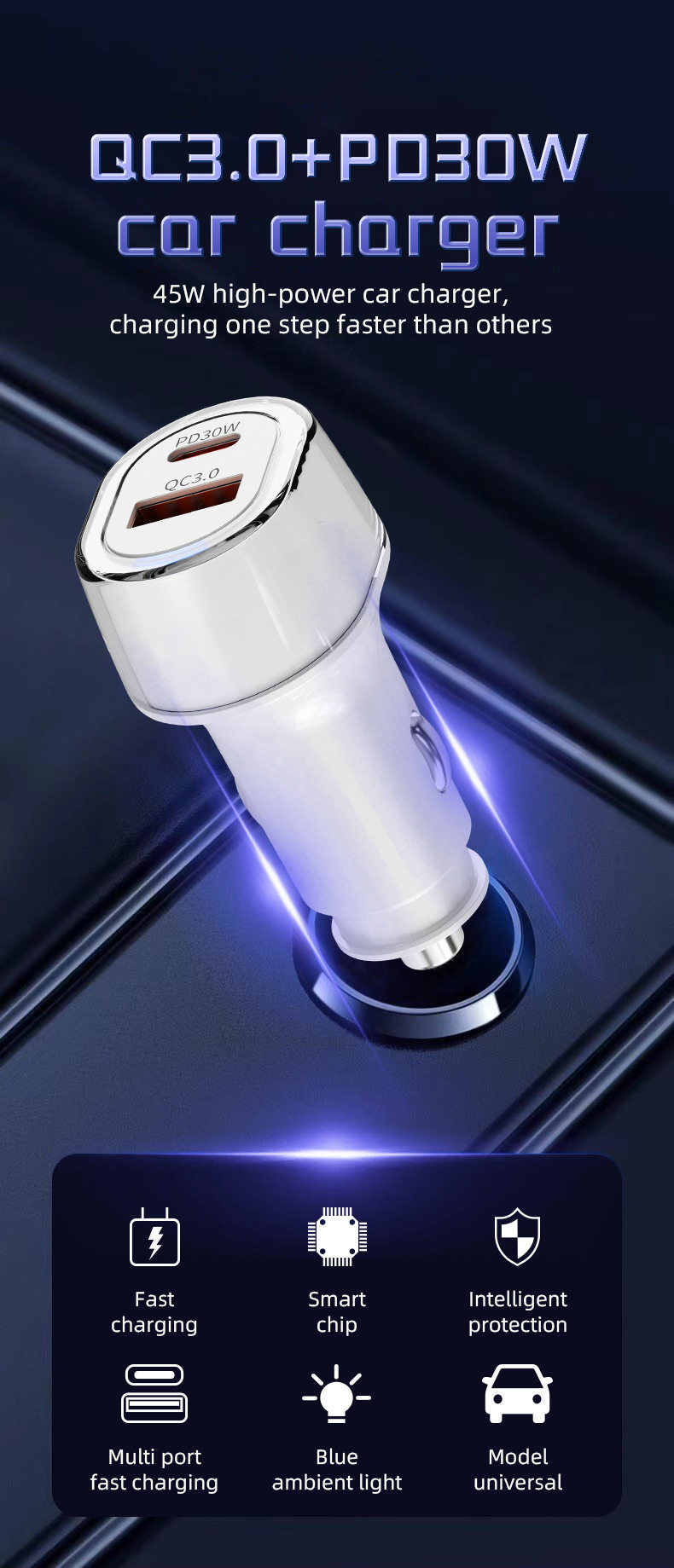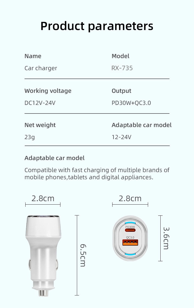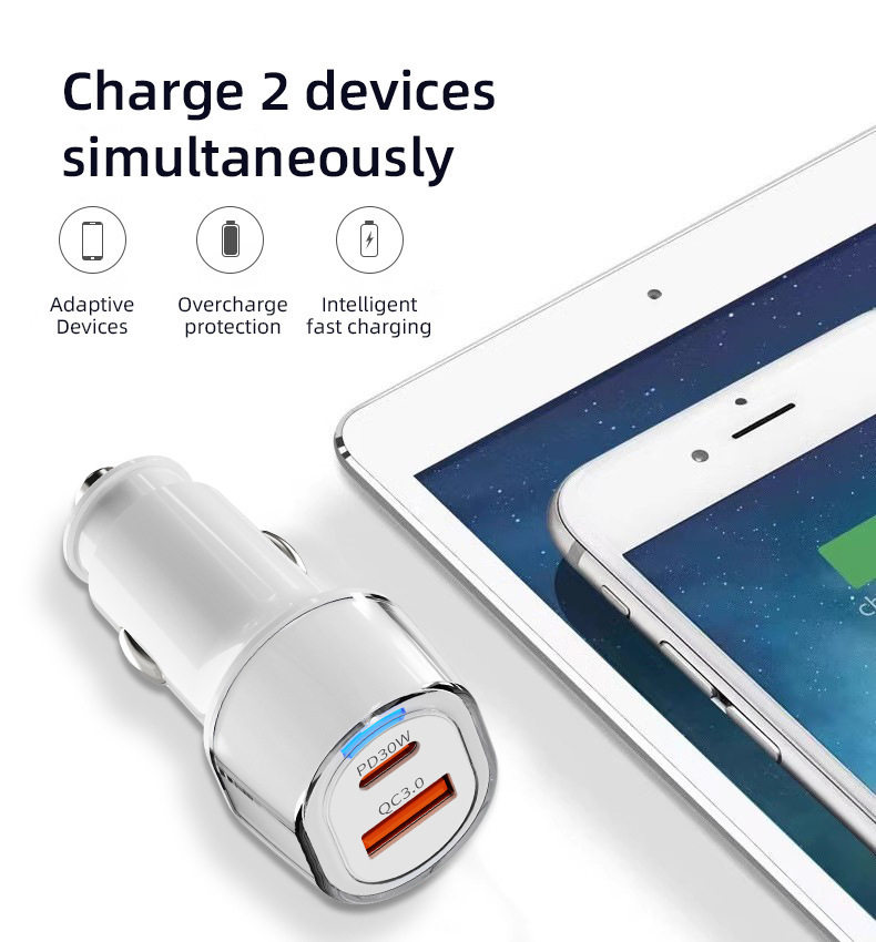 Universal 65W Super Fast Charging Car Charger Pd30W One-To-Two Cigarette Lighter Adapter Car Charger