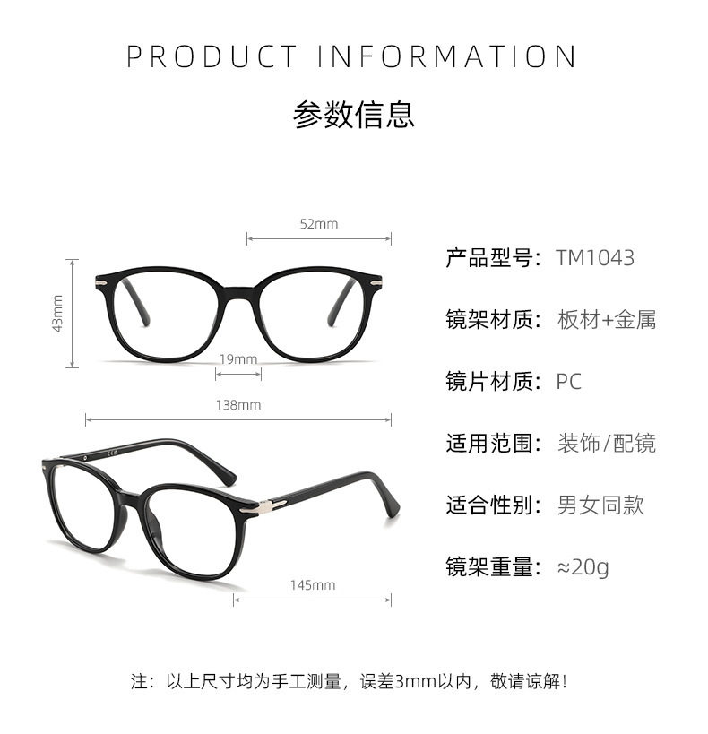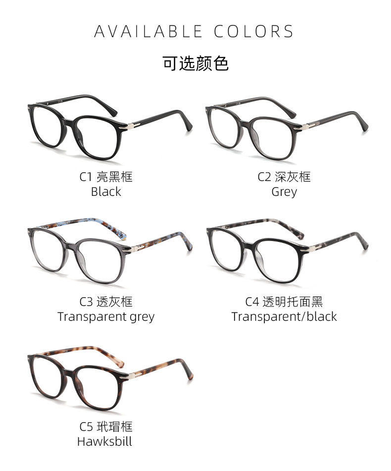 | Frame color | C1 bright black frame,C2 dark gray frame,C3 transparent gray frame,C4 transparent support black,C5 tortoise shell frame |