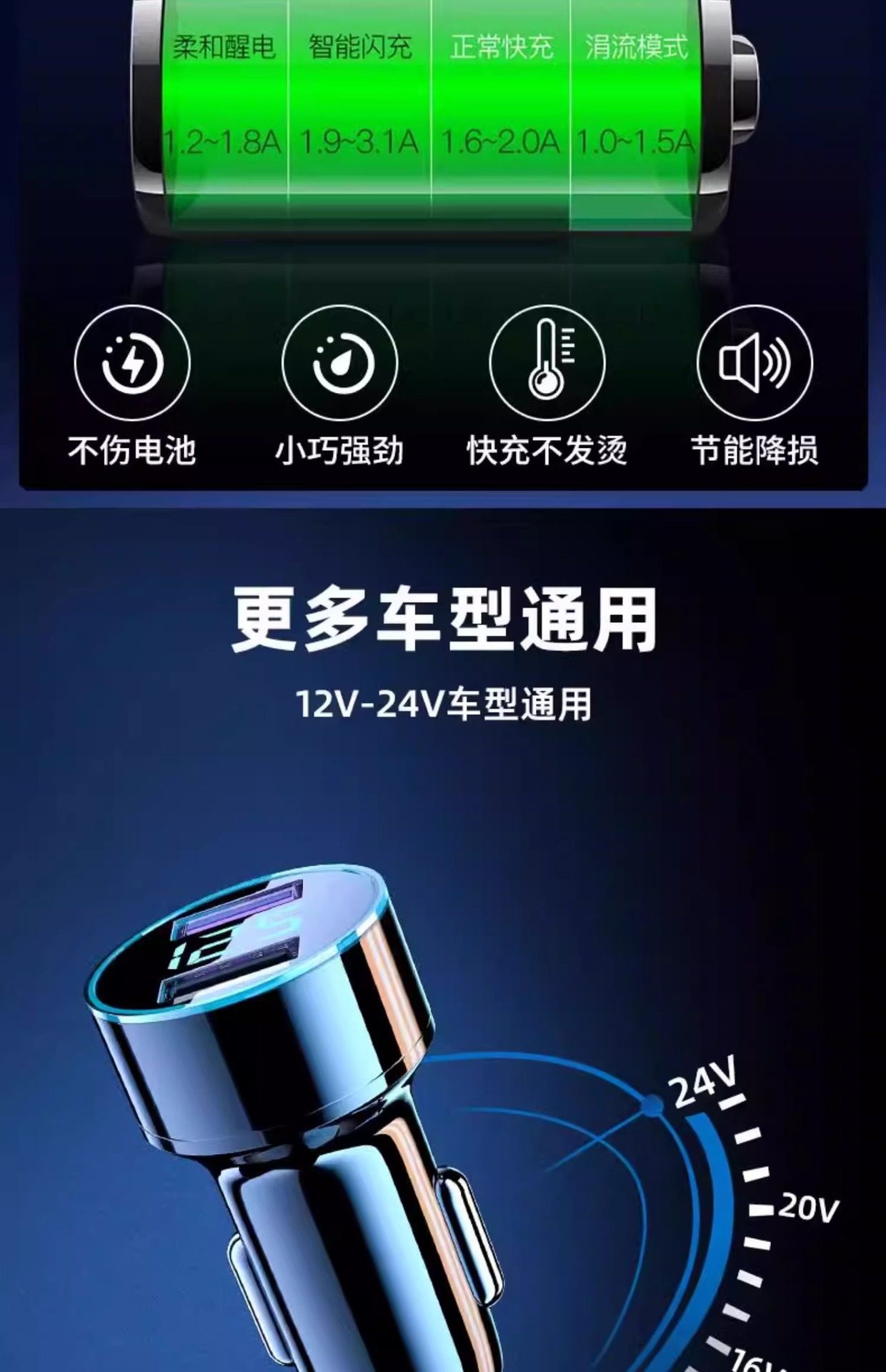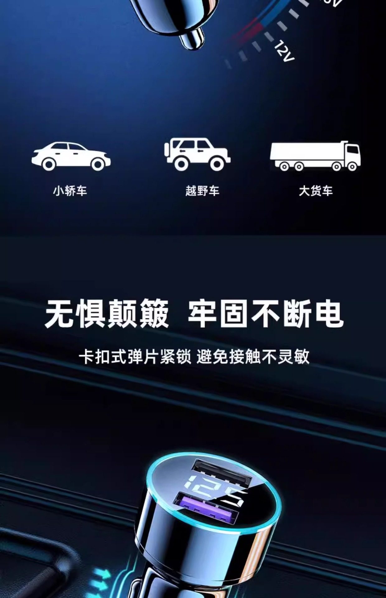 | Model | [digital display model] car dual usb port charger (with box),[digital display model] car dual usb port charger + type-c fast charging cable 1m (with box),[digital display model] car dual usb port charger + one to three fast charging cables 1.2m (with box) |