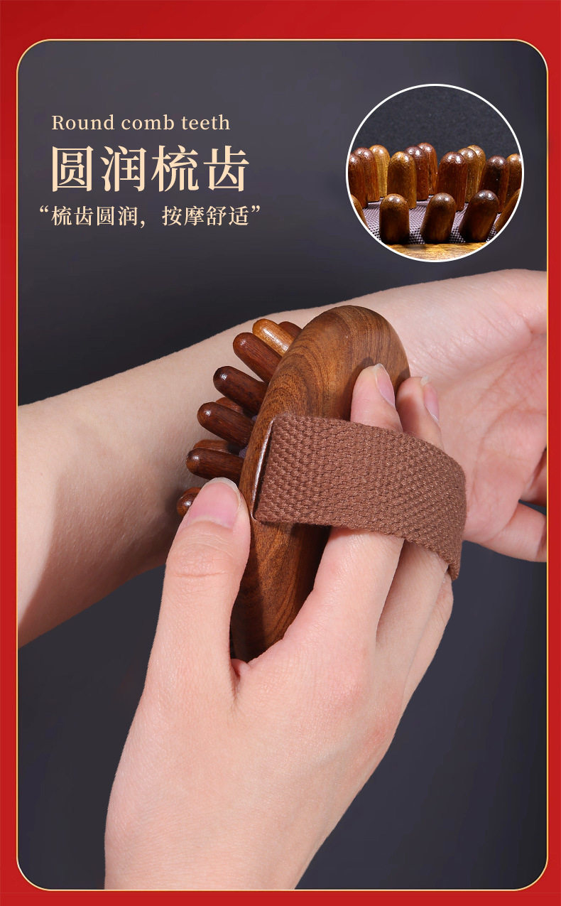 Black Gold Sandalwood Meridian Brush Massage Comb for Full Body Use, a Universal Dredging Tool for Rubbing the Belly and Burning Abdominal Muscles and Scraping