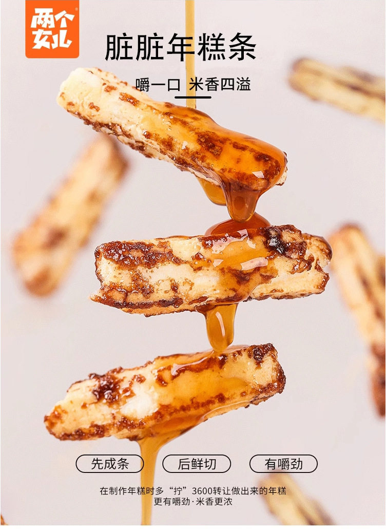 Two Daughters' Dirty Rice Cake Strips Brown Sugar Flavor Crab Roe Flavor Internet-Famous Office Casual Snacks Wholesale
