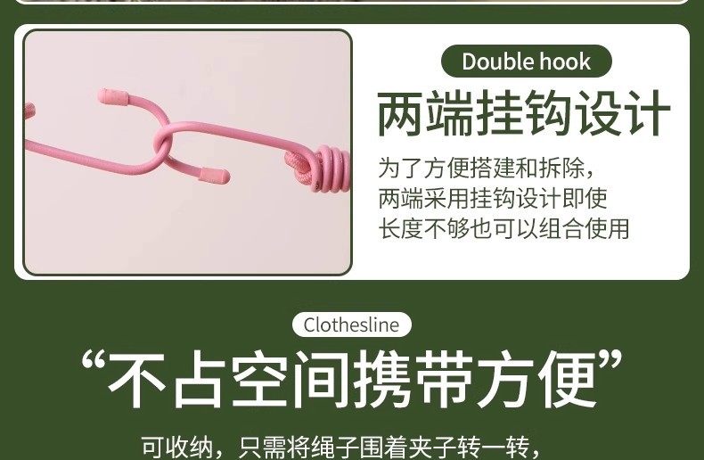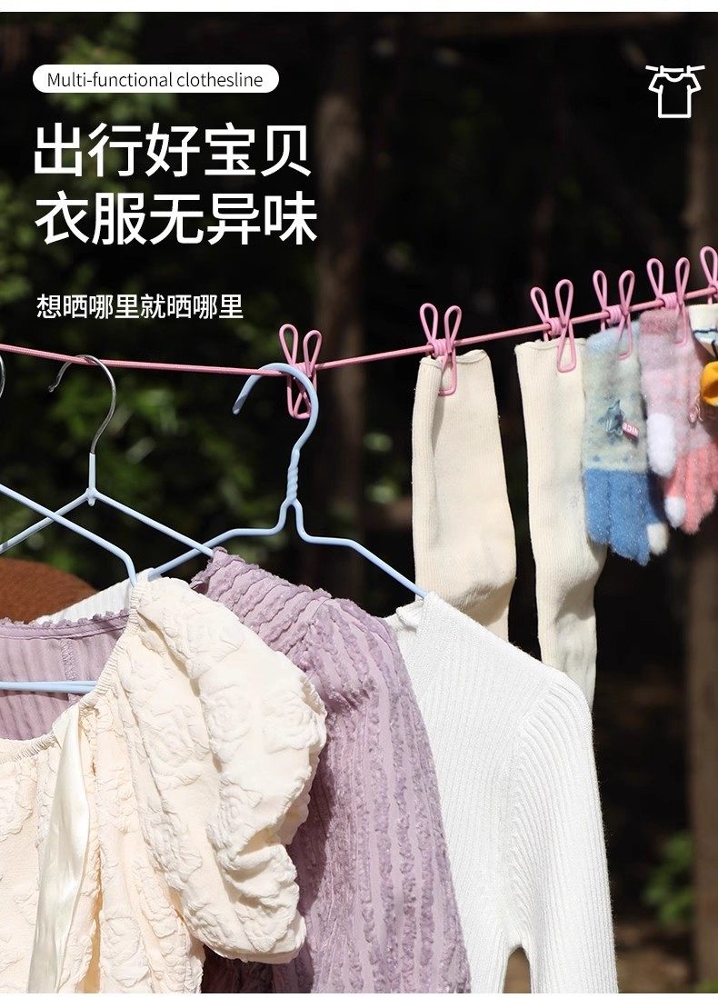 Portable Clothesline, No Drilling Required, Multifunctional for Travel and Outdoor Use, Windproof Elastic Clip for Balcony, Perfect for Drying Quilts