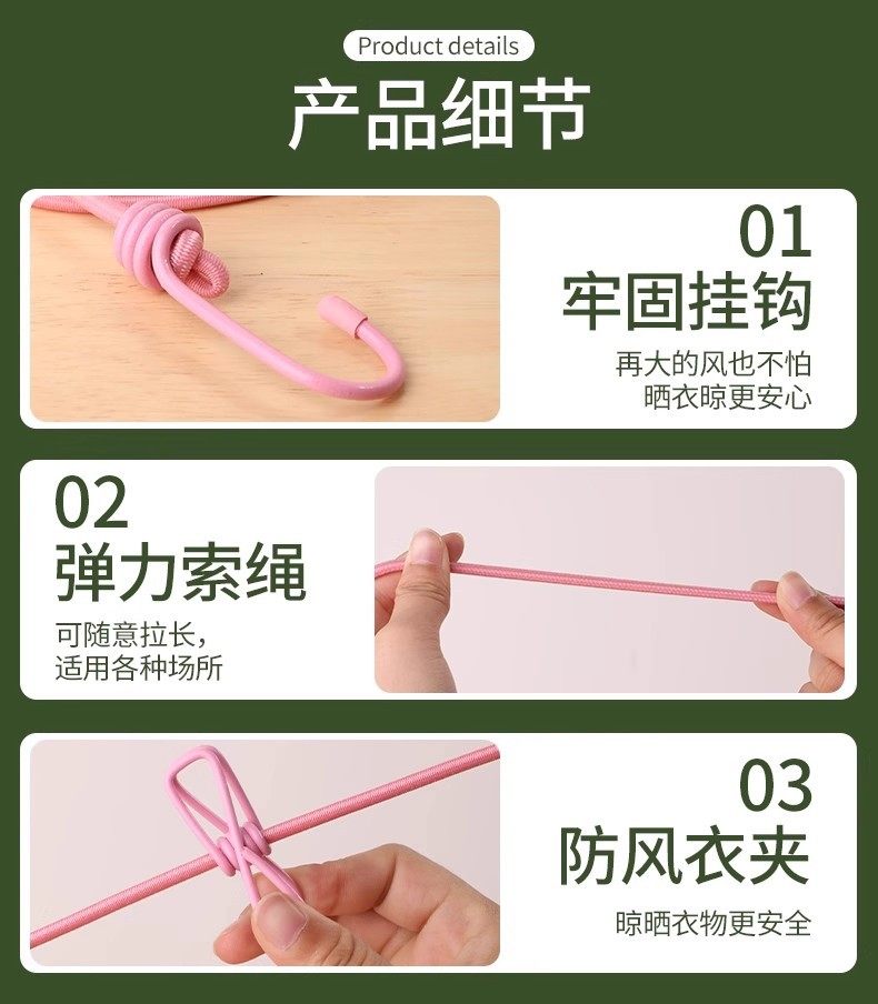 | Color | Retractable drying rope [rose red],Retractable drying rope [color clip white rope],Retractable drying rope [pink],Retractable drying rope [white clip white rope],10 colored clips |