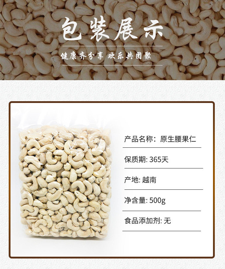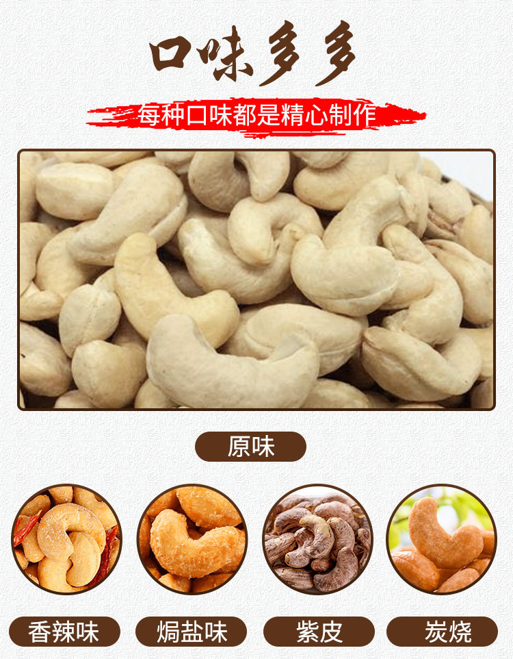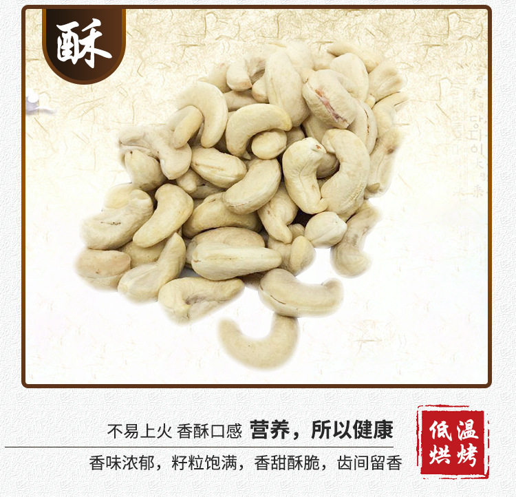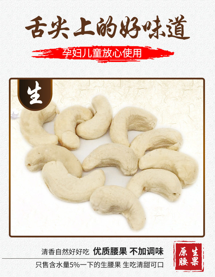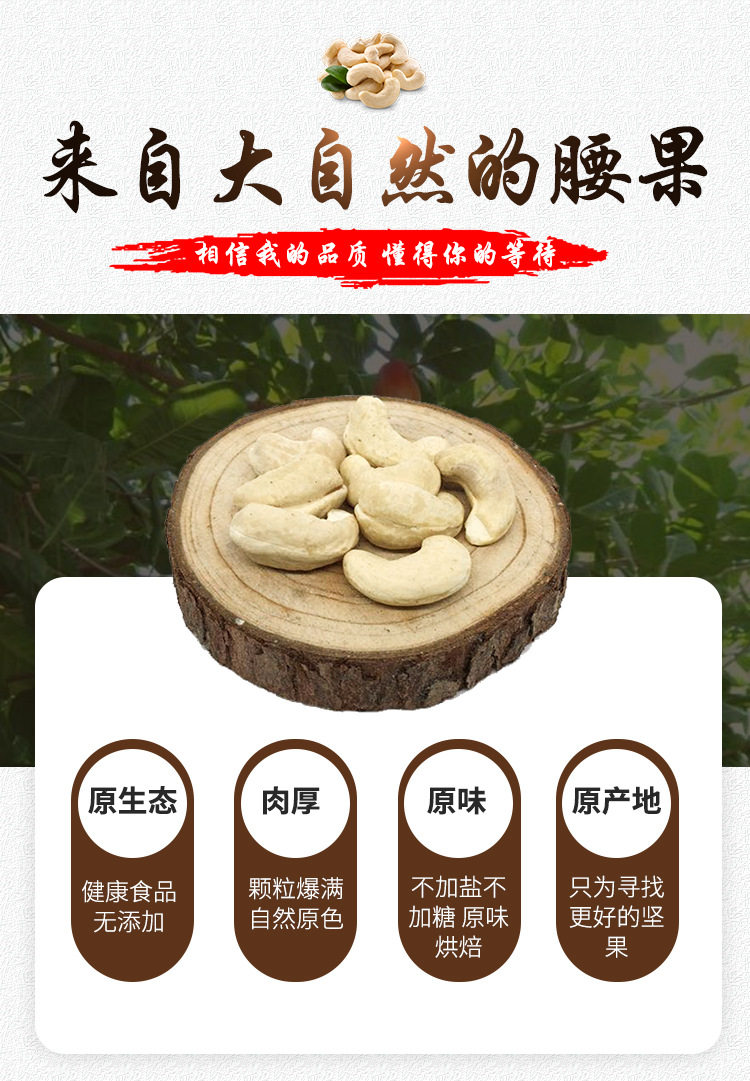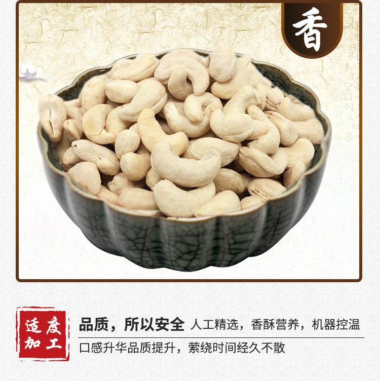 | Packaging specifications | Original raw cashew nuts 0.5kg (small fruits),Original raw cashew nuts 1.0kg (small fruits),Original raw cashew nuts 2.5kg (small fruits),Original cooked cashew nuts 0.5kg (trial price),Original cooked cashew nuts 1.0kg (affordable price),Original cooked cashew nuts 2.5kg (full box price),320 large capsules original raw cashew nuts 1.0kg (affordable price,320 large capsules original raw cashew nuts 0.5kg (trial pack,320 large capsules original raw cashew nuts 2.5kg (full box price,240 extra large capsules original raw cashew nuts 0.5kg (trial,240 extra large capsules original raw cashew nuts 1.0kg net weight,240 extra large capsules original raw cashew nuts 2.5kg net weight,180 huge capsules original raw cashew nuts 0.5kg pack net content,180 huge capsules original raw cashew nuts 1.0kg pack net content,180 huge capsules original raw cashew nuts 2.5kg pack net content |