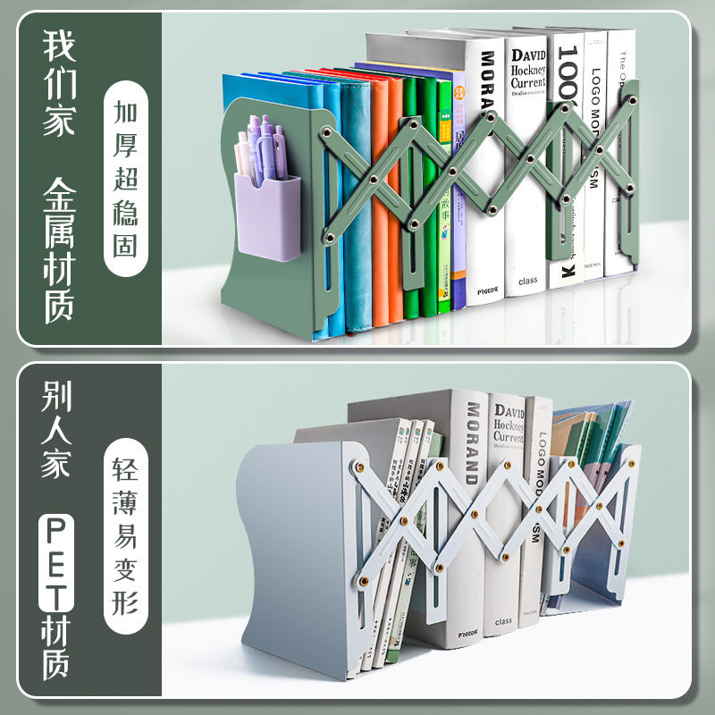 Retractable Book Stand with Pen Holder Bookshelf Integrated Desktop Book Storage Rack High School Student Bezel Book Clip Foldableing Fixed