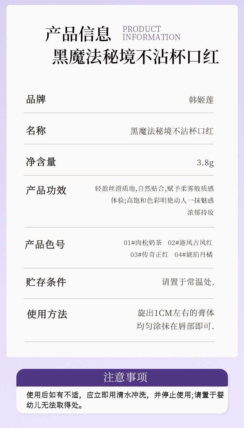 | Product name | Han jilian-1019 black magic secret non-stick lipstick |