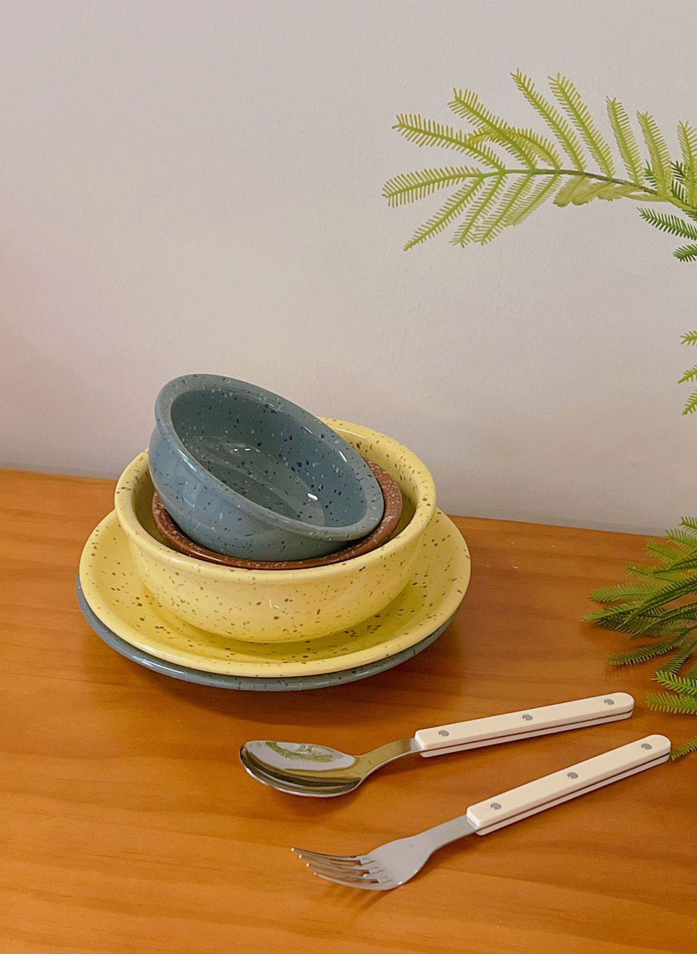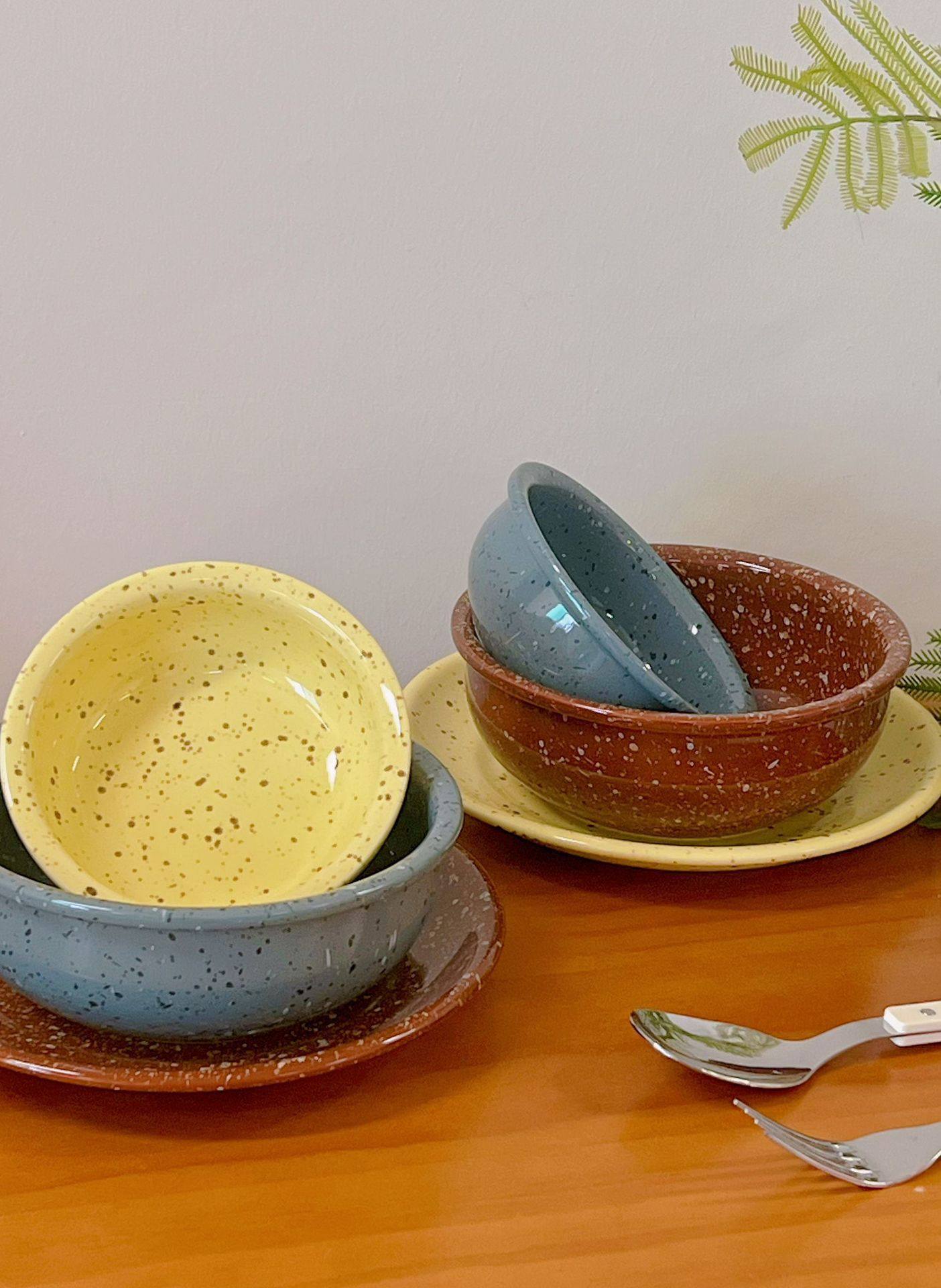 Splash-Ink Retro Simple Ceramic Rice Bowl Soup Bowl Shallow Dish Plate Ceramic Tableware Set Household Imitation Enamel Style