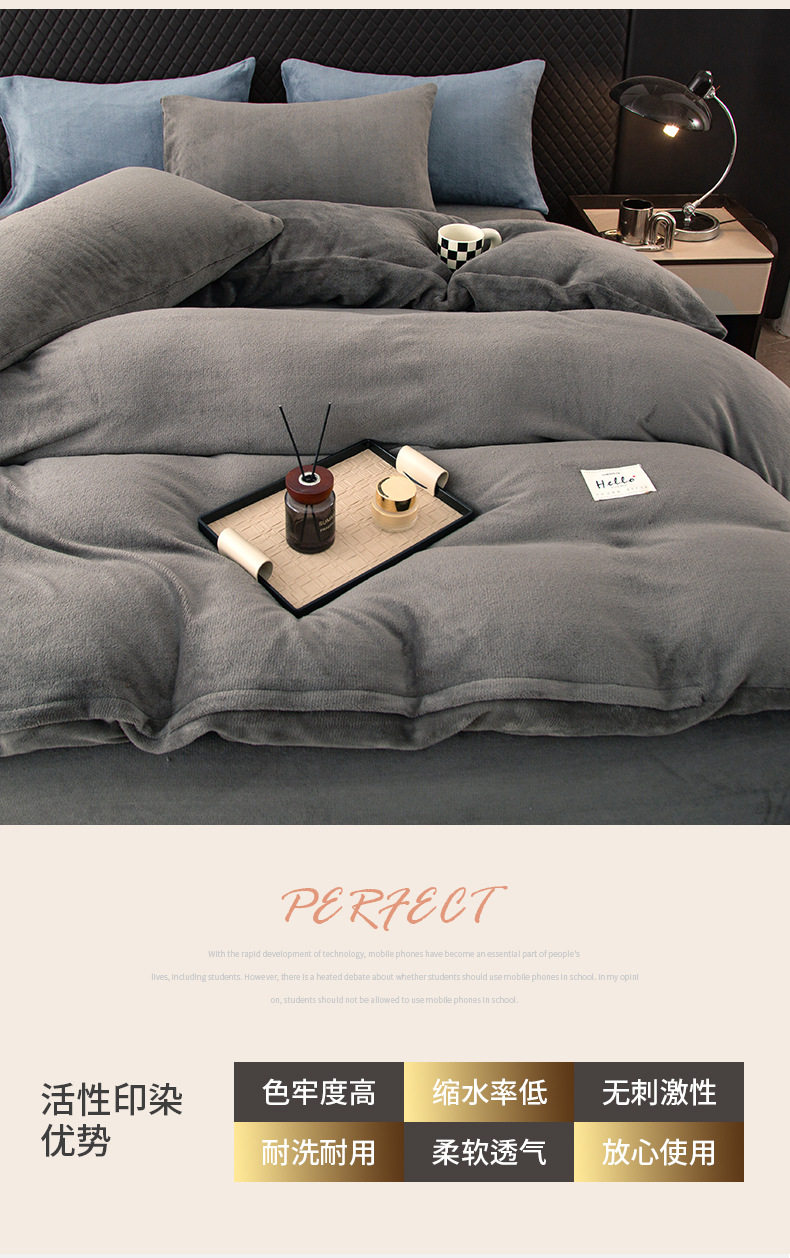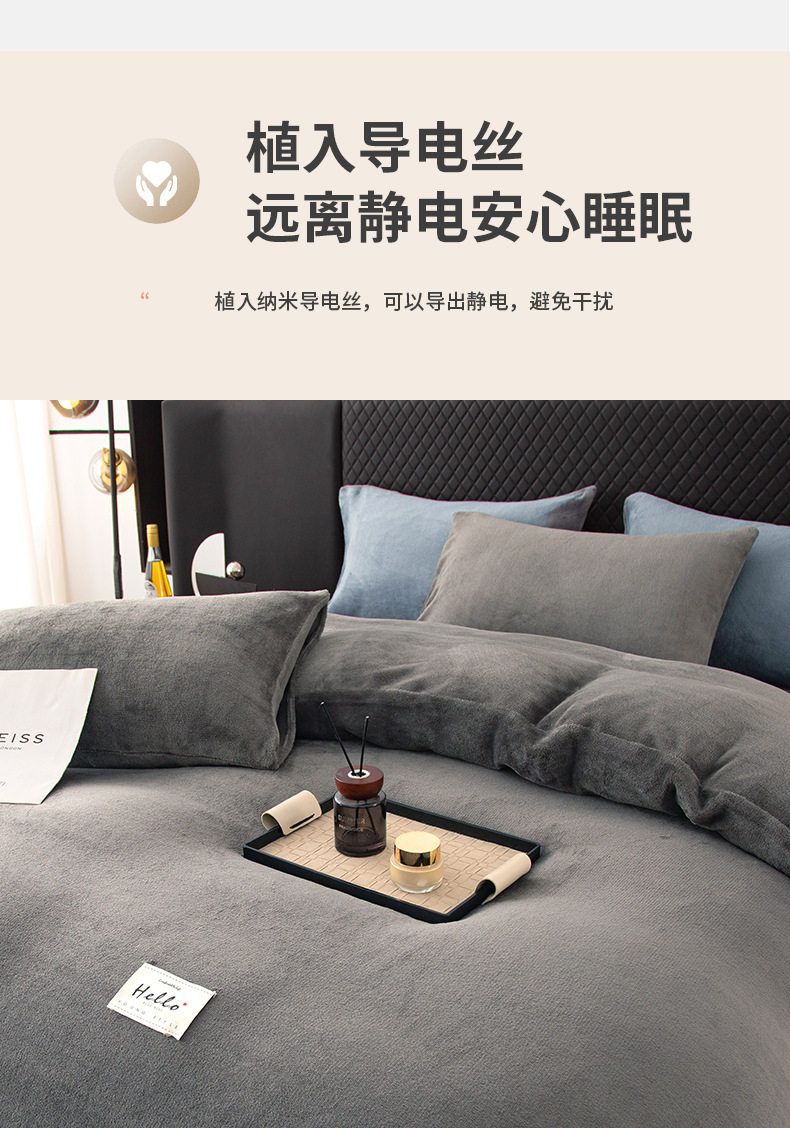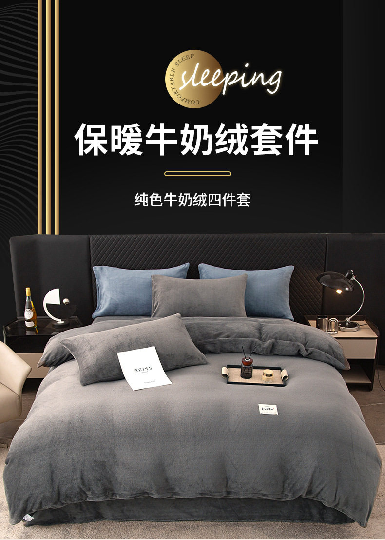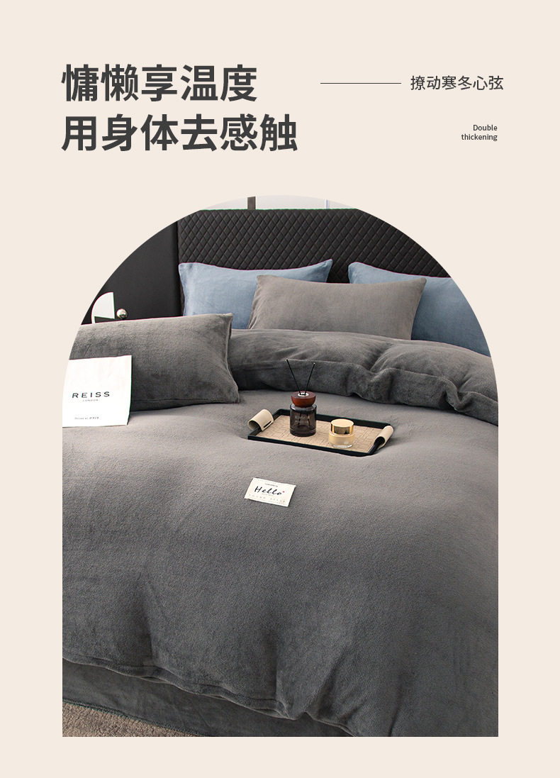 Four-Piece Milk Velvet Bed Thickeneded Warm Bedding Winter Double-Sided Coral Flannel Bed Bed Sheets Quilt Cover Three-Piece Set