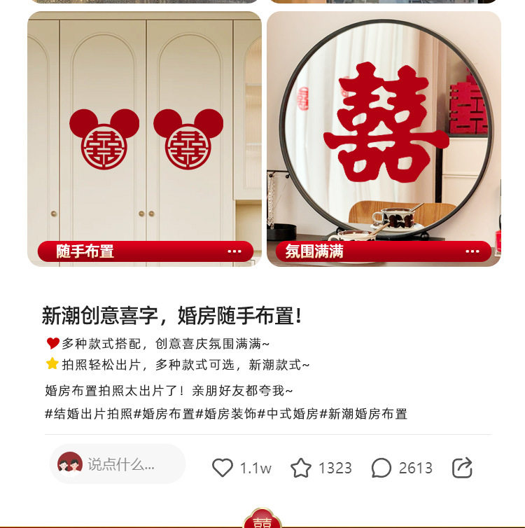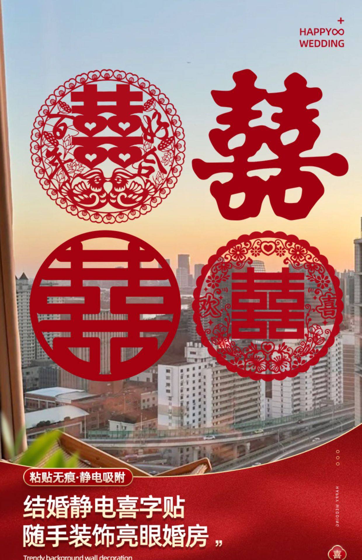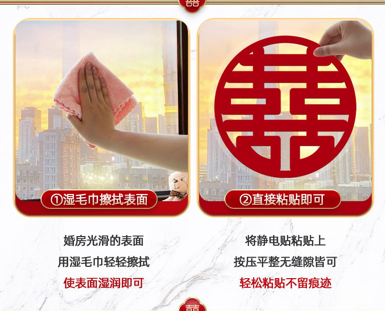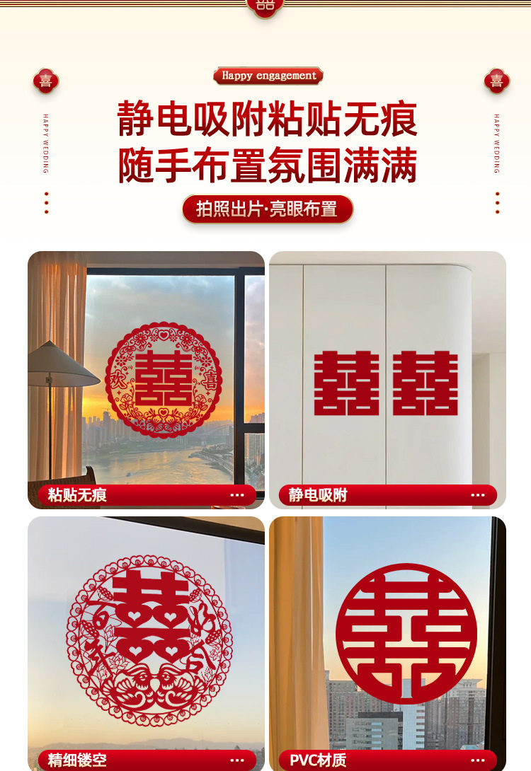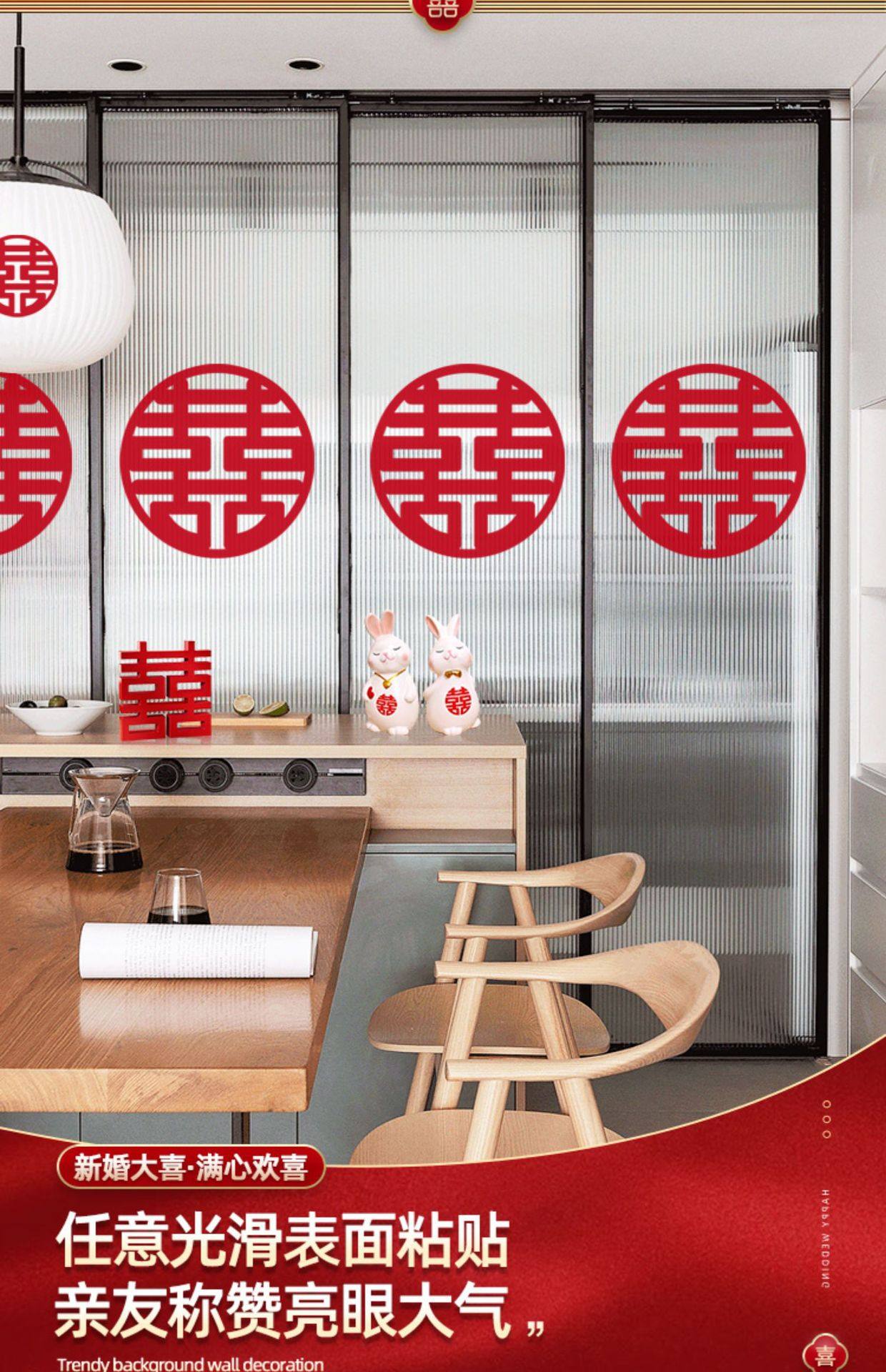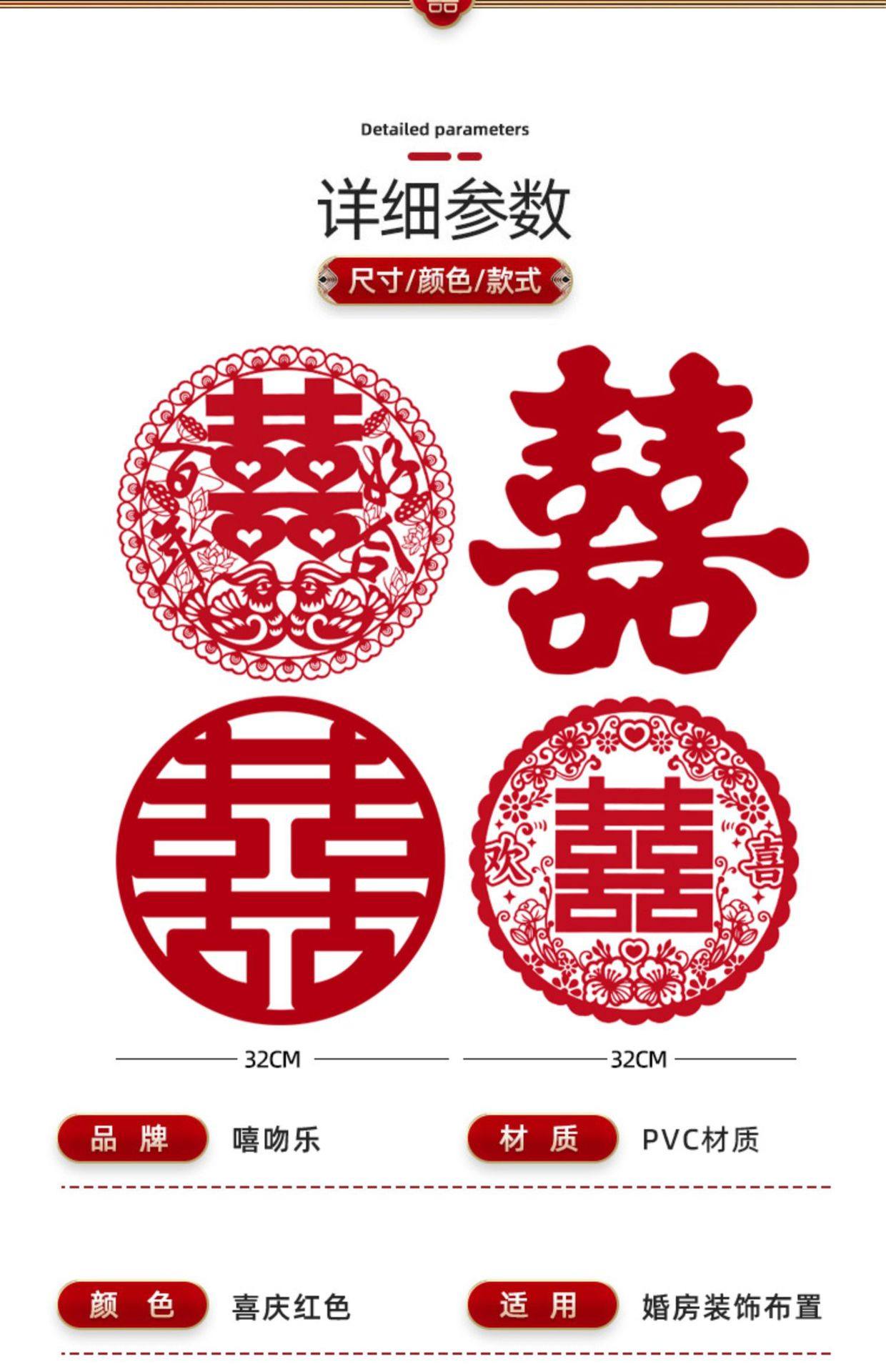 Special electrostatic stickers for wedding with "Happiness" stickers on window glass "囍" stickers for weddings, wedding room layout, wedding car decoration, window grilles "囍"