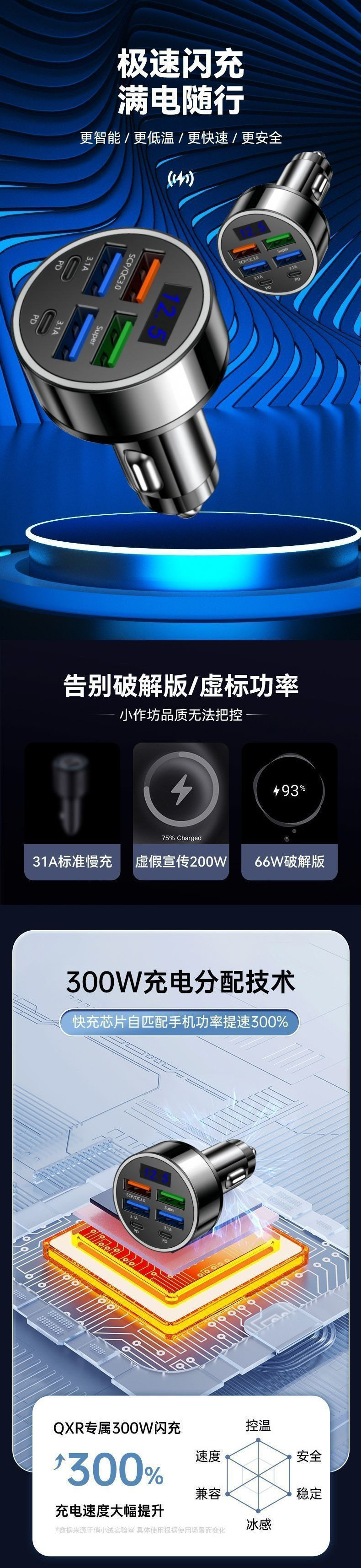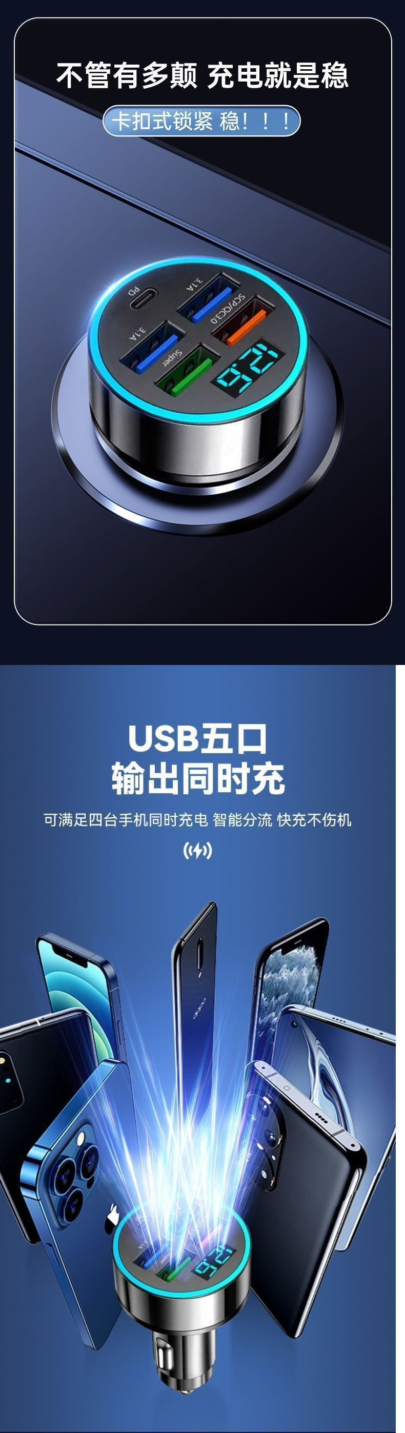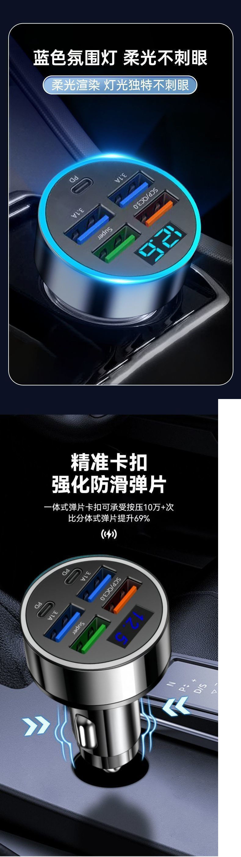 Car Fast Charging Charger Super Fast Charging Car Cigarette Lighter One-Point-Six Conversion Car Charger Multi-Port Flash Charging Head Free Shipping