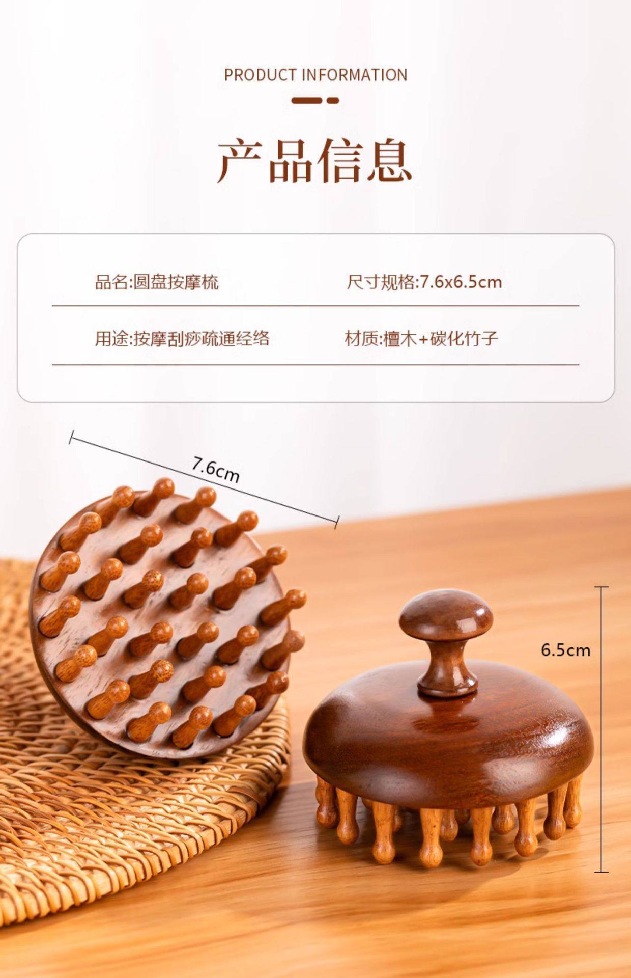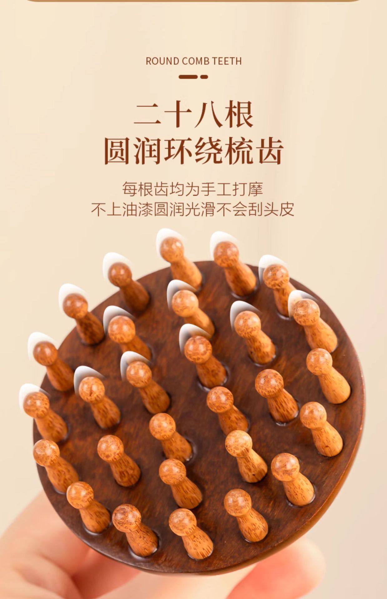 Golden Sandalwood Disc 28-Tooth Massage Comb Scalp Massage Comb Hair Therapy Health Care Whole Body Dredging Sandalwood Meridian Comb Wholesale