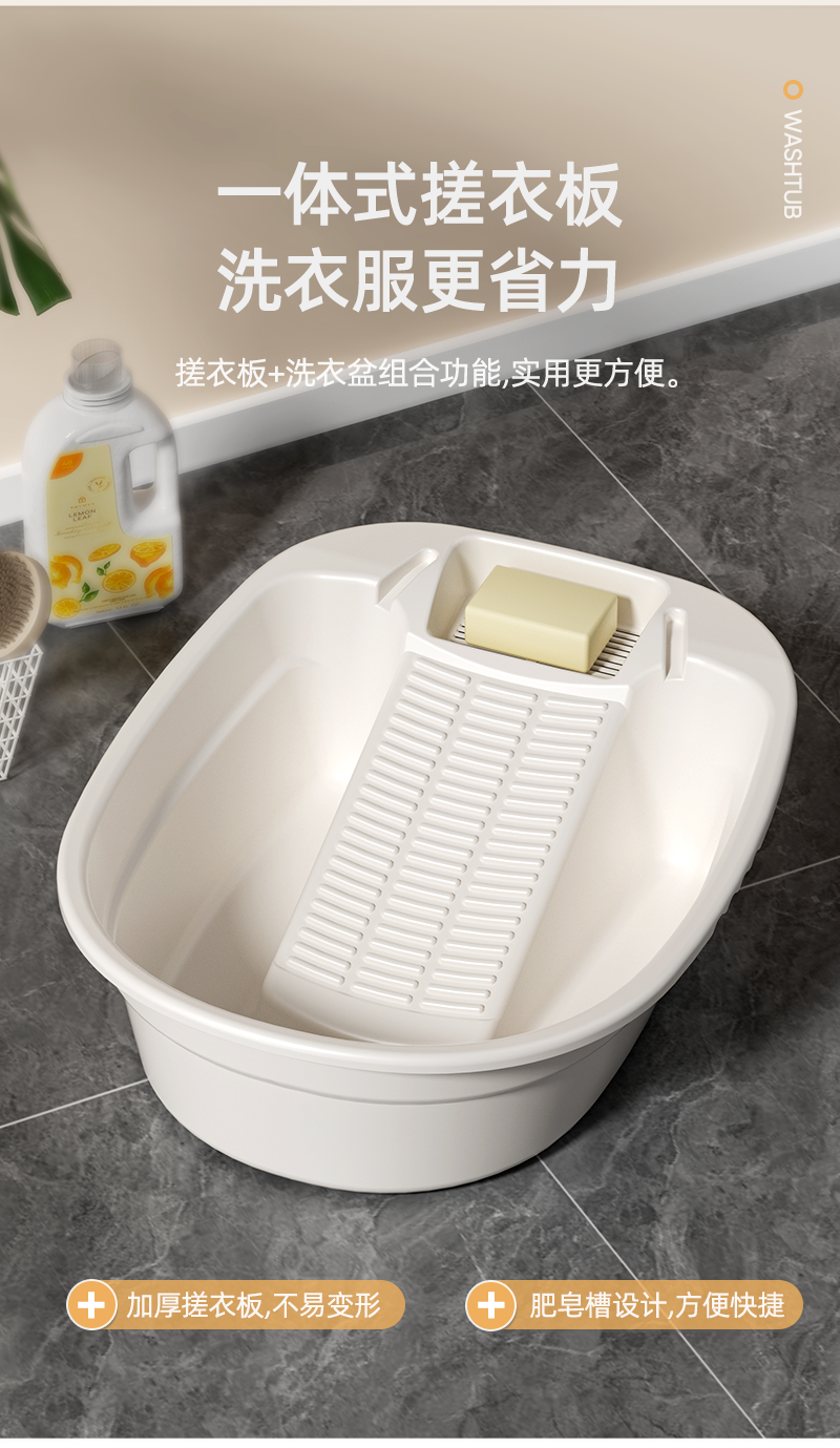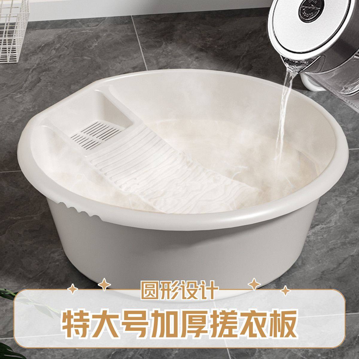 Household Large Washbasin with Washboard Laundry Basin Thickened Large Capacity with Soap Box Non-Slip Dormitory Washboard Basin