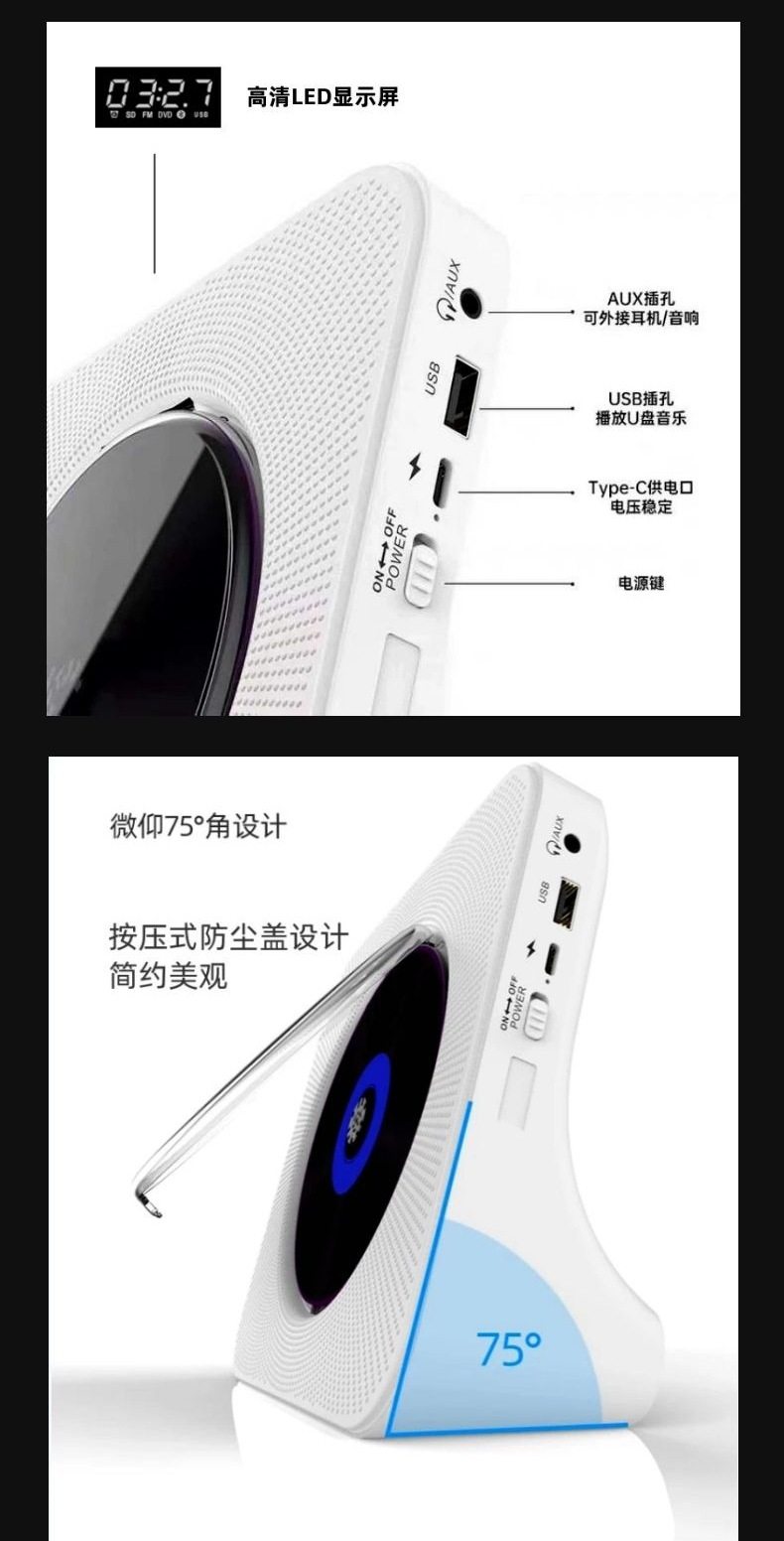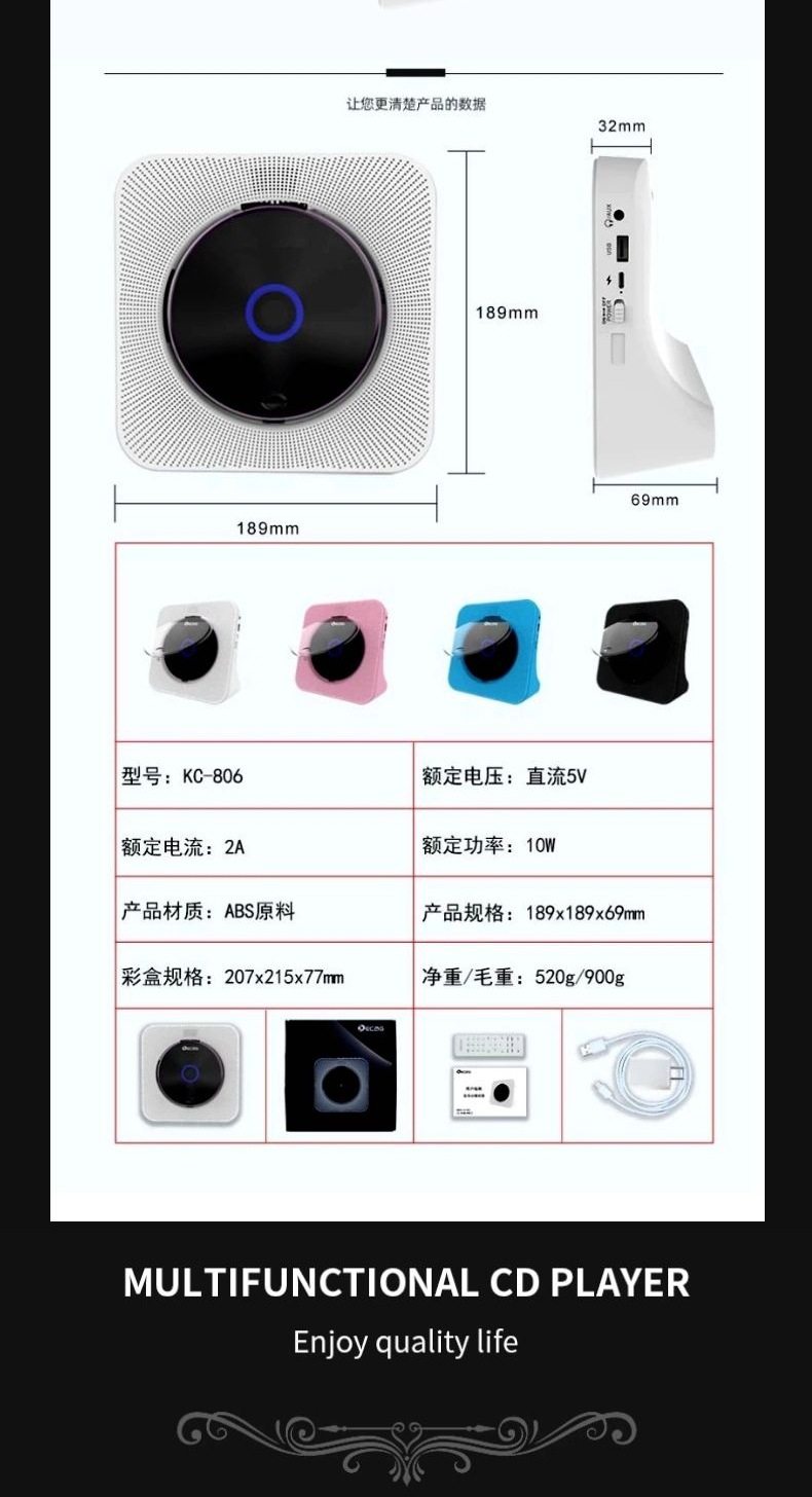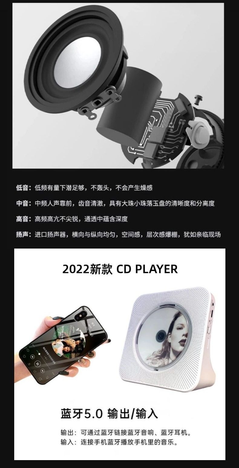 Bluetooth Cd Player Rechargeable Walkman Audio Ins Gift Nostalgic Music Vinyl Retro Album Player