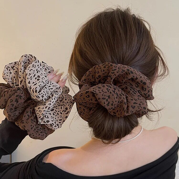 European and American Stylish Versatile Hot Girl Leopard Print Hair Tie High-End Ponytail Hair Rope Rubber Band Ball Hair Accessories