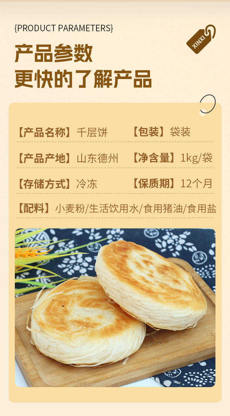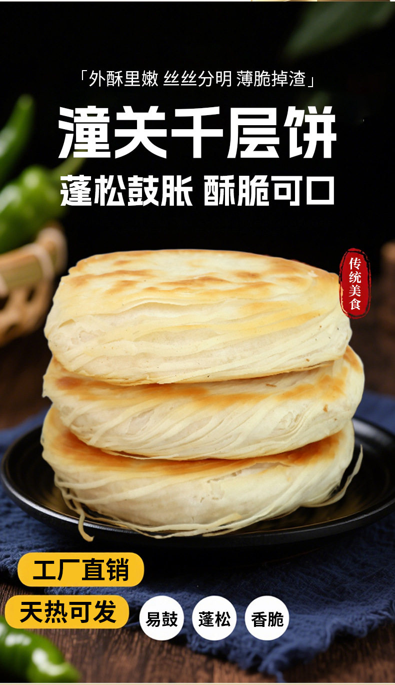 Lao Tongguan Thousand Layer Cake Commercial Breakfast Stall Semi-Finished Thousand Layer Meat Bun Wholesale Instant Meat Bun Cake Base