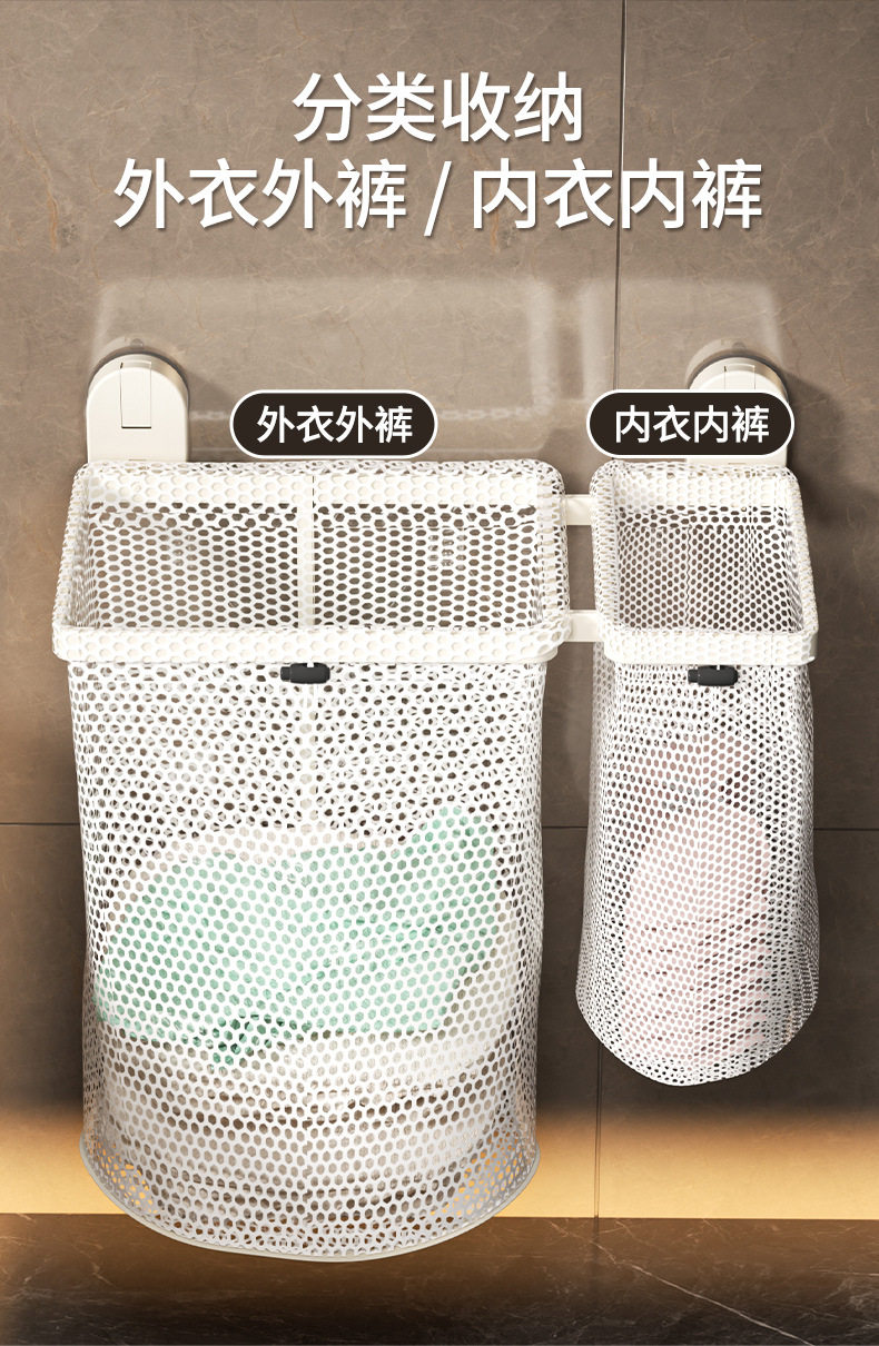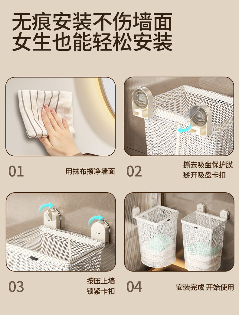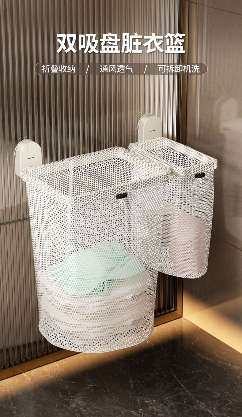 Suction Cup Dirty Clothes Basket Household Dirty Clothes Basket Wall-Mounted Foldable Bathroom Bathroom Dirty Clothes Storage Basket