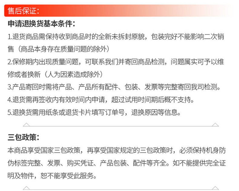 | After-sale service | Store three guarantees |
